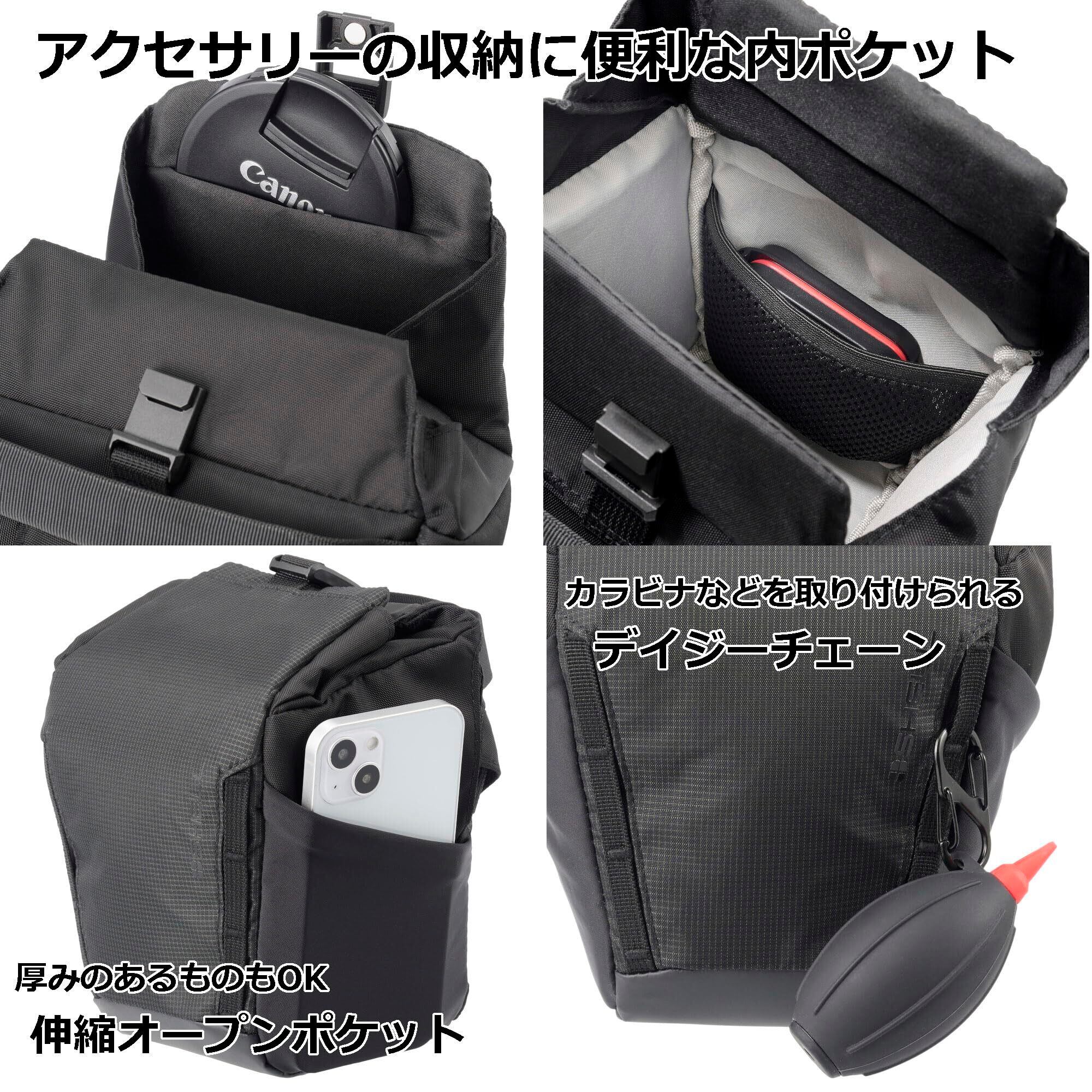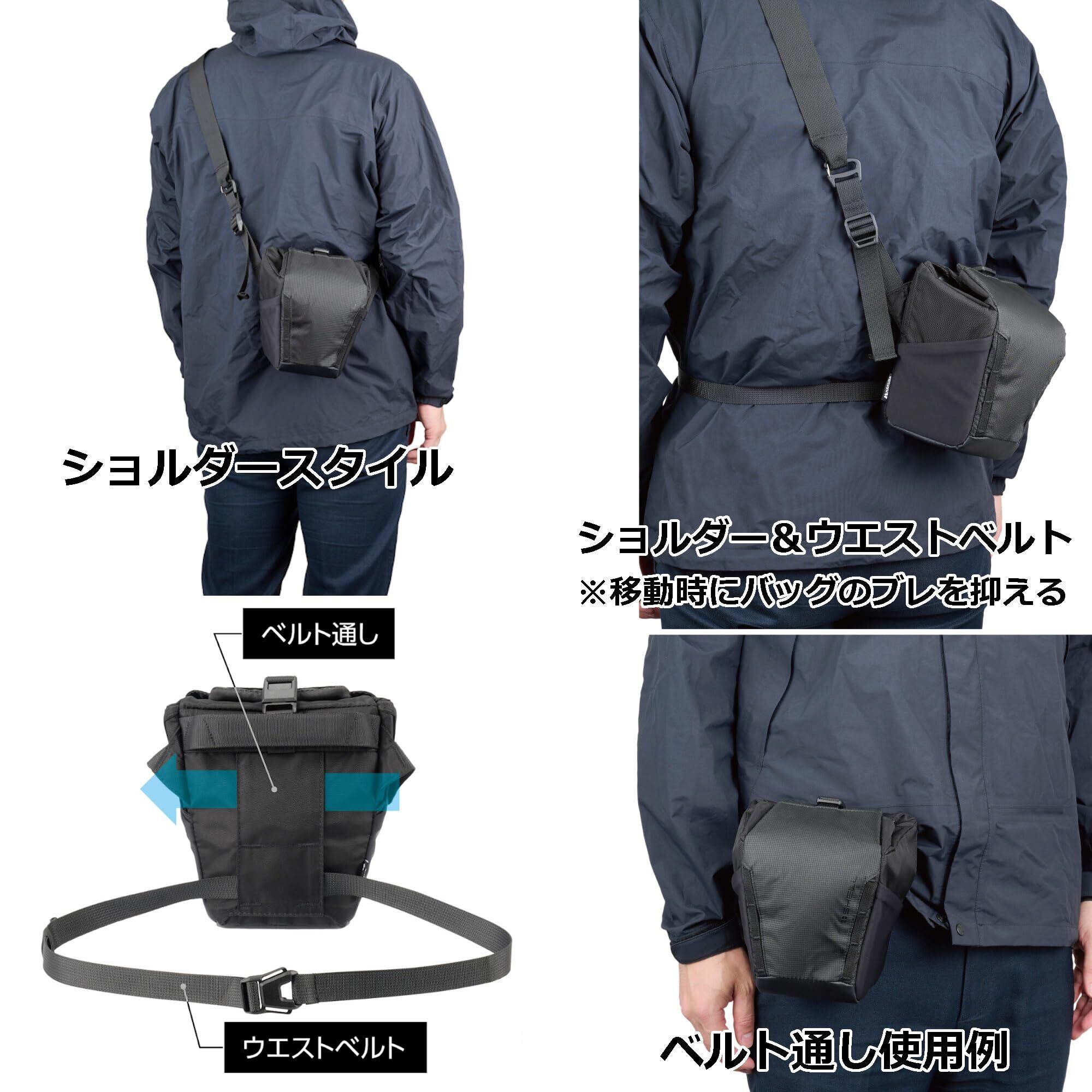 クイックアクセスが可能なコンパクトカメラバッグ。 ショルダーバッグ・ウエストバッグ・バックパックに取り付け等、様々な持ち運び方に対応。