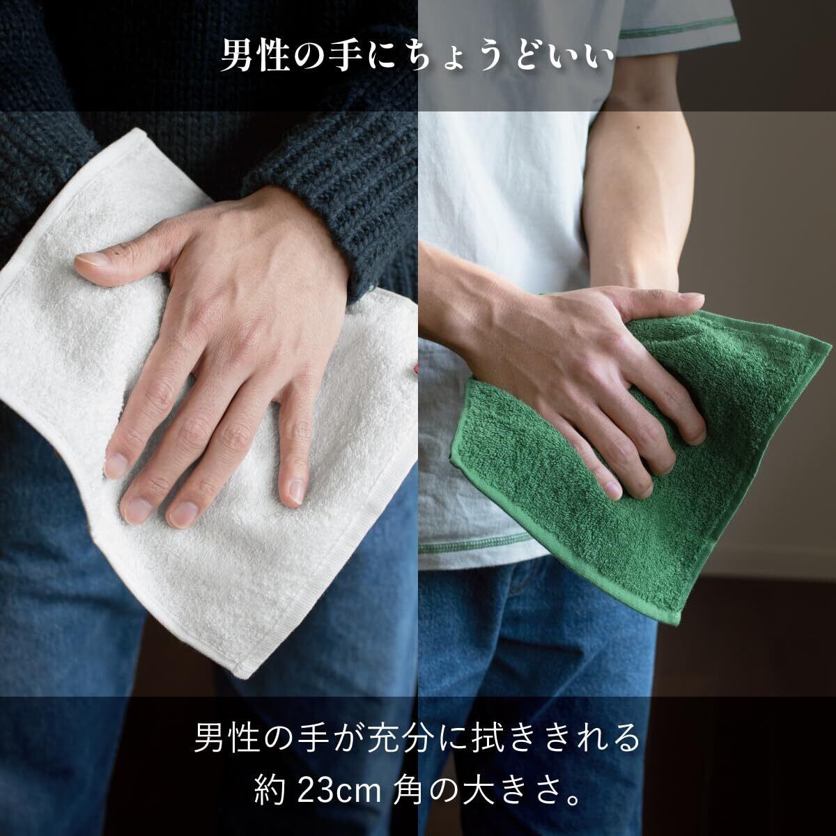 一日中使ってもしっかりと吸収してくれるパイル。ズボンのポケットにもはみ出さず収まってくれる大きさ。