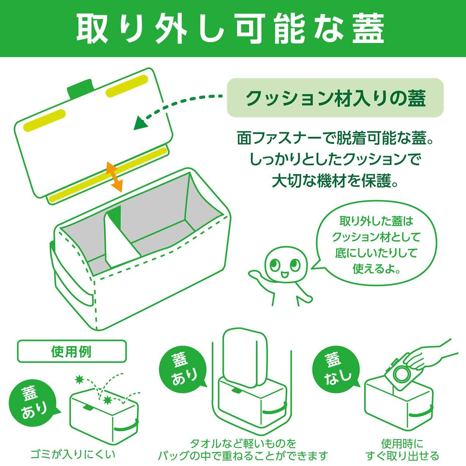 クッション入りの蓋はホコリの侵入や上からの衝撃から守り、不要な時は取り外しが可能です。