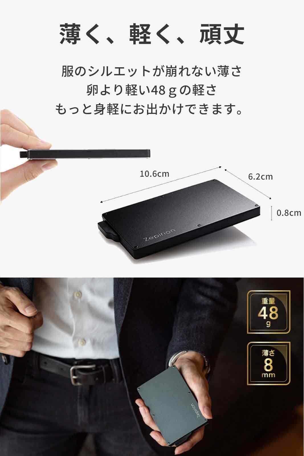 【ワンタッチで取り出し】 レバーをスライドすることで一瞬でカードを取り出すことができます。階段式に取り出せる為、使うカードを選ぶ手間もありません。カードを戻す場合も取り出し口に差し込むだけ。蛇腹(じゃばら)式のように、チャックの開け閉めもなく、仕事や生活をスムーズかつスマートに演出してくれます。大容量ではないですが、必要最低限なカードのみ持ち歩けます。