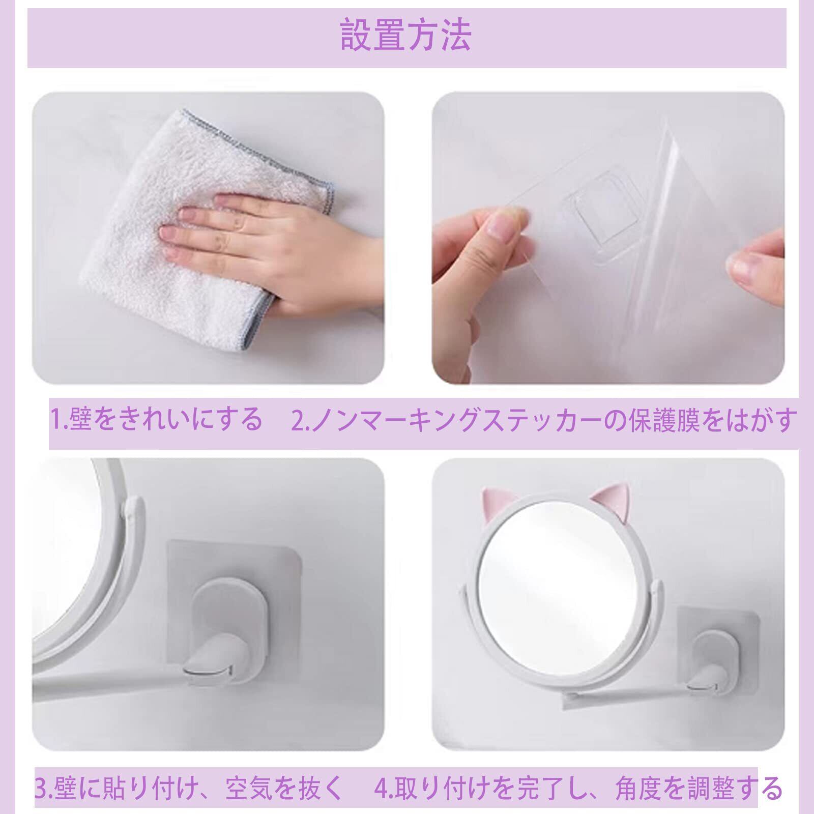 また、寝室での使用も可能で、ドレッシングテーブルの前に貼り付ければすぐに使用できます。 しかも、壁を傷めない。 しかも、自分の好きな角度に調整できるのです。 メイクアップに合わせて自在に角度を調整できます。