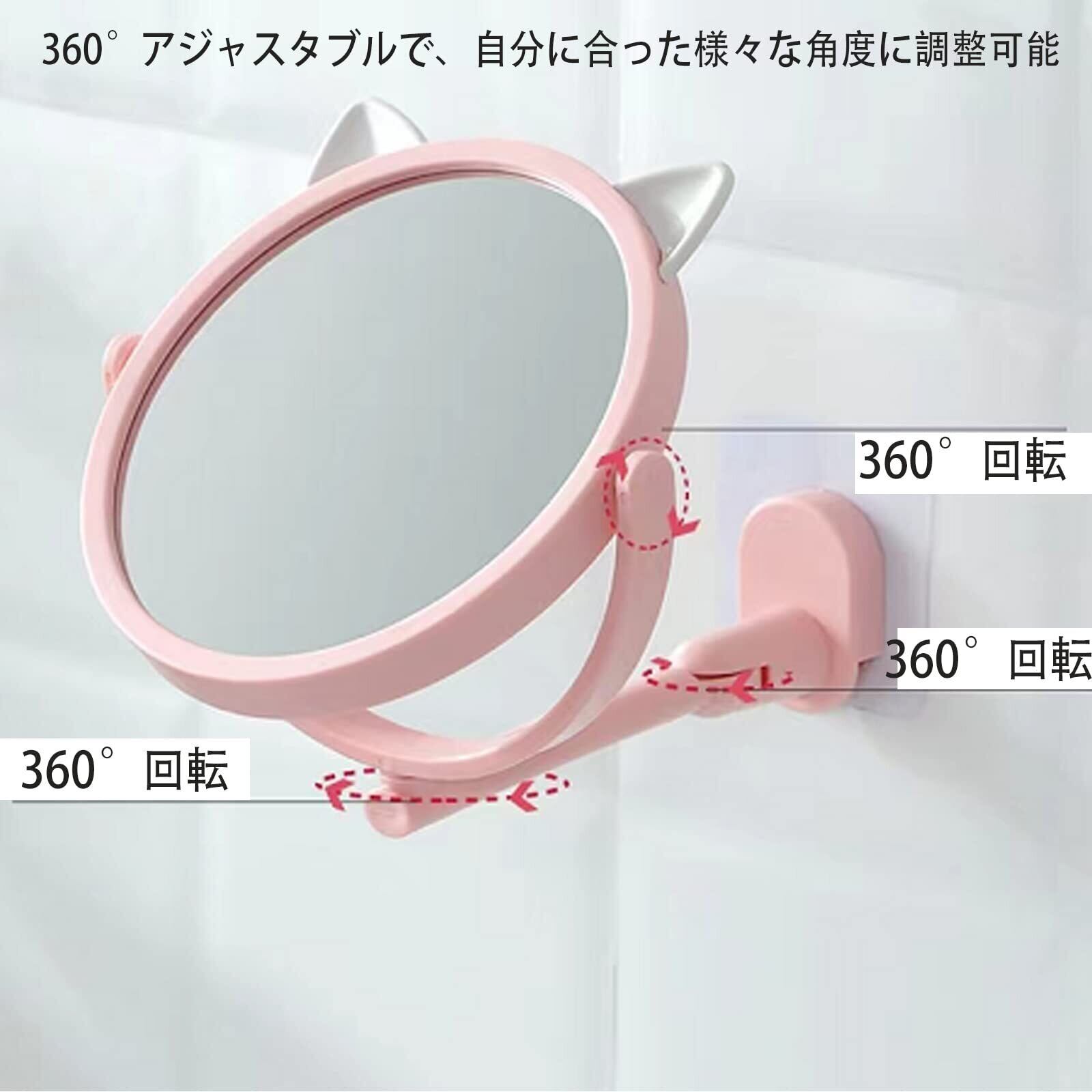 猫型の洗面台ミラーは、高精細なフロートガラスを使用し、シャープな反射と歪みのないデザインです。 ピンクと白の包み込むようなデザインはとてもかわいらしく、ラインがはっきりしていて清潔感があり、ガラスには飛散防止用の防爆フィルムが貼られています。