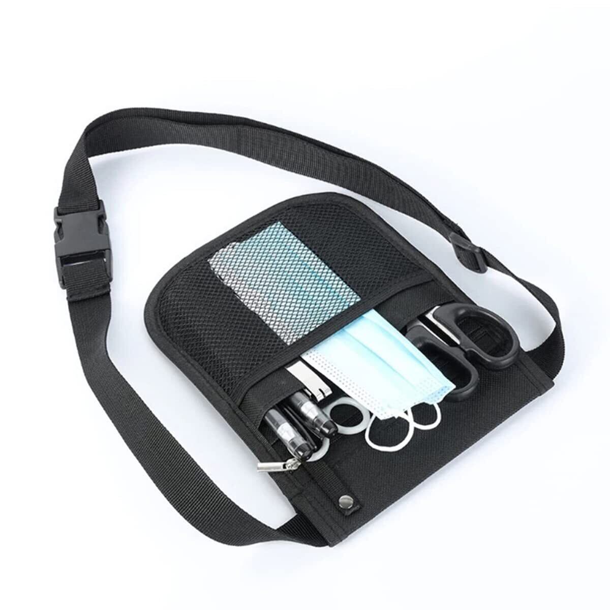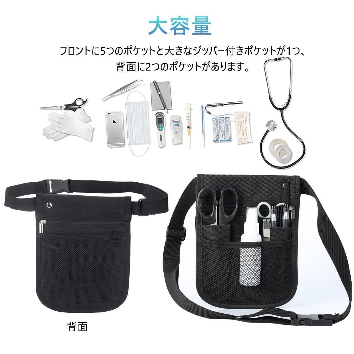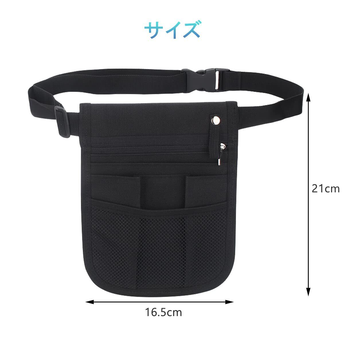 サムコス ウエストポーチ 工具袋 保育 仕事用 エプロンバッグ ウエストバッグ ベルト付 多機能ポケット (black)