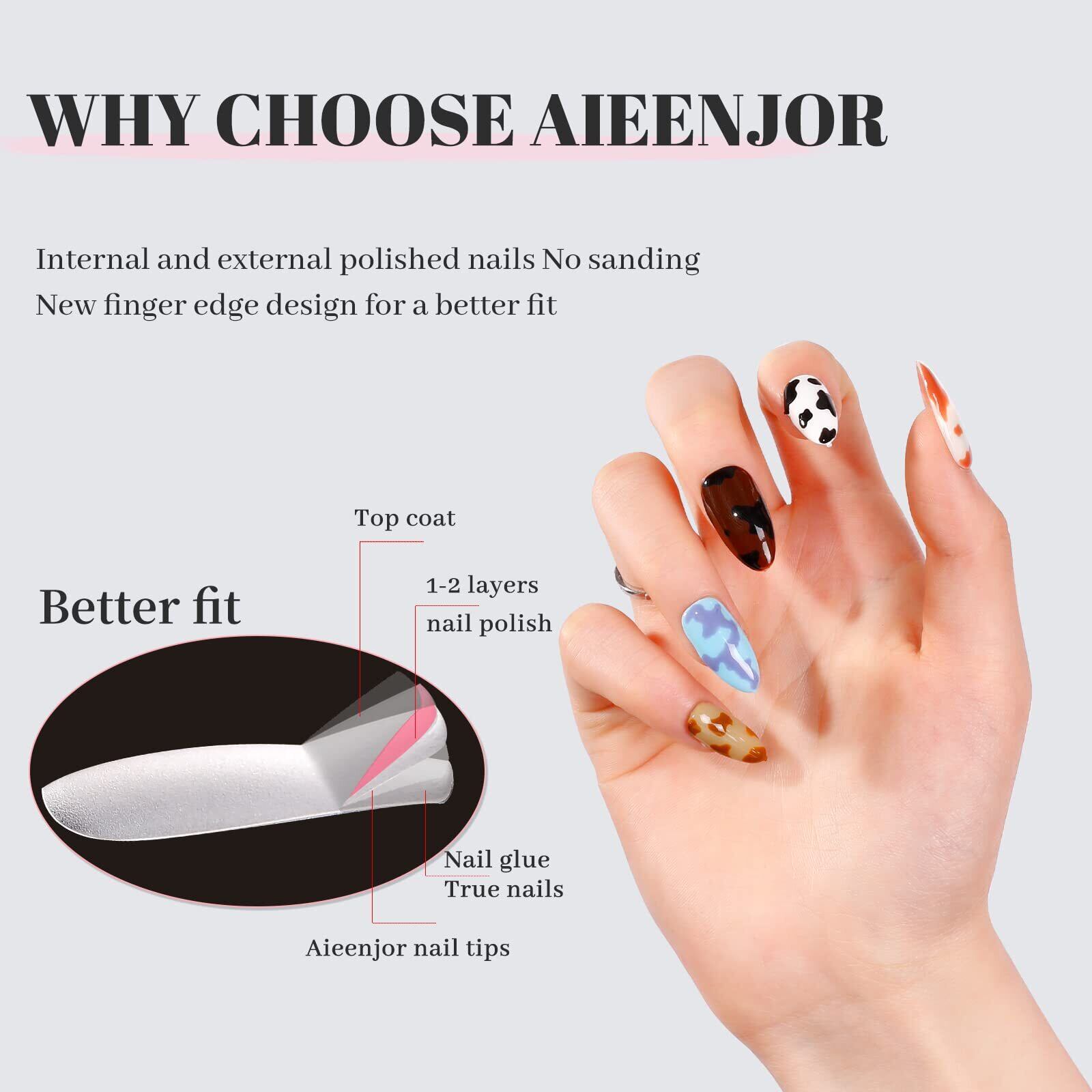 300PCS Aieenjor ネイルチップミディアムネイルチップートアーモンドネイルDIY の釘パッチ 15 のサイズのための自然な適合の擬似釘を曇らしました