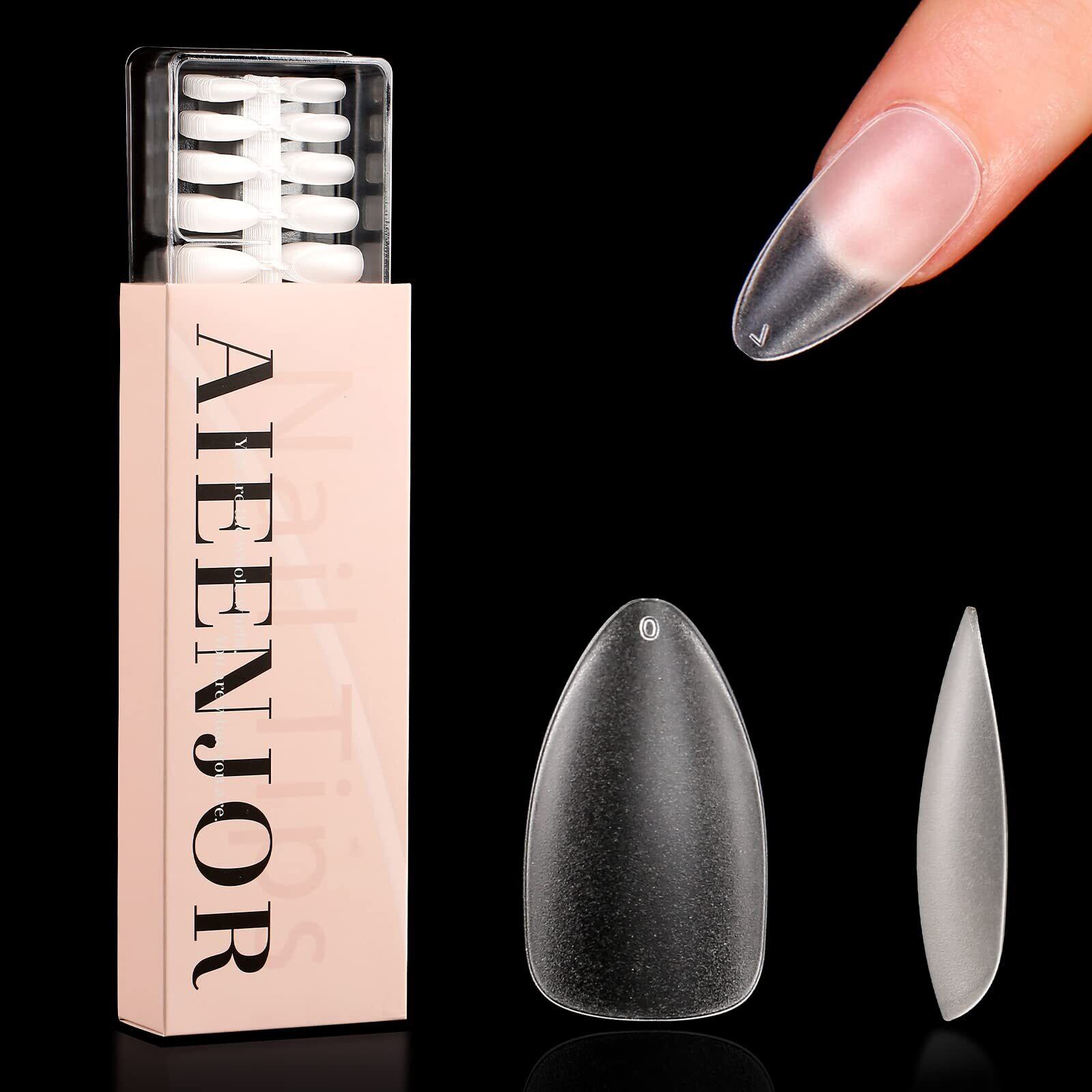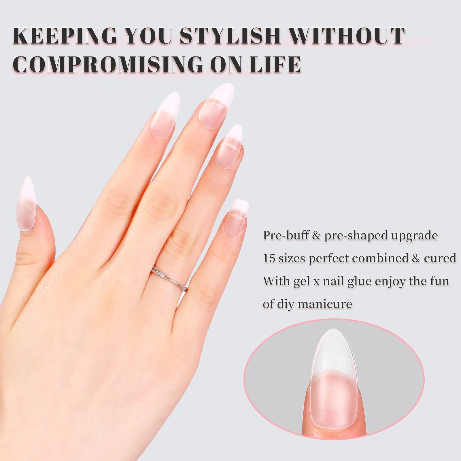 480PCS Aieenjor ネイルチップミディアムネイルチップートアーモンドネイルDIY の釘パッチ 15 のサイズのための自然な適合の擬似釘を曇らしました