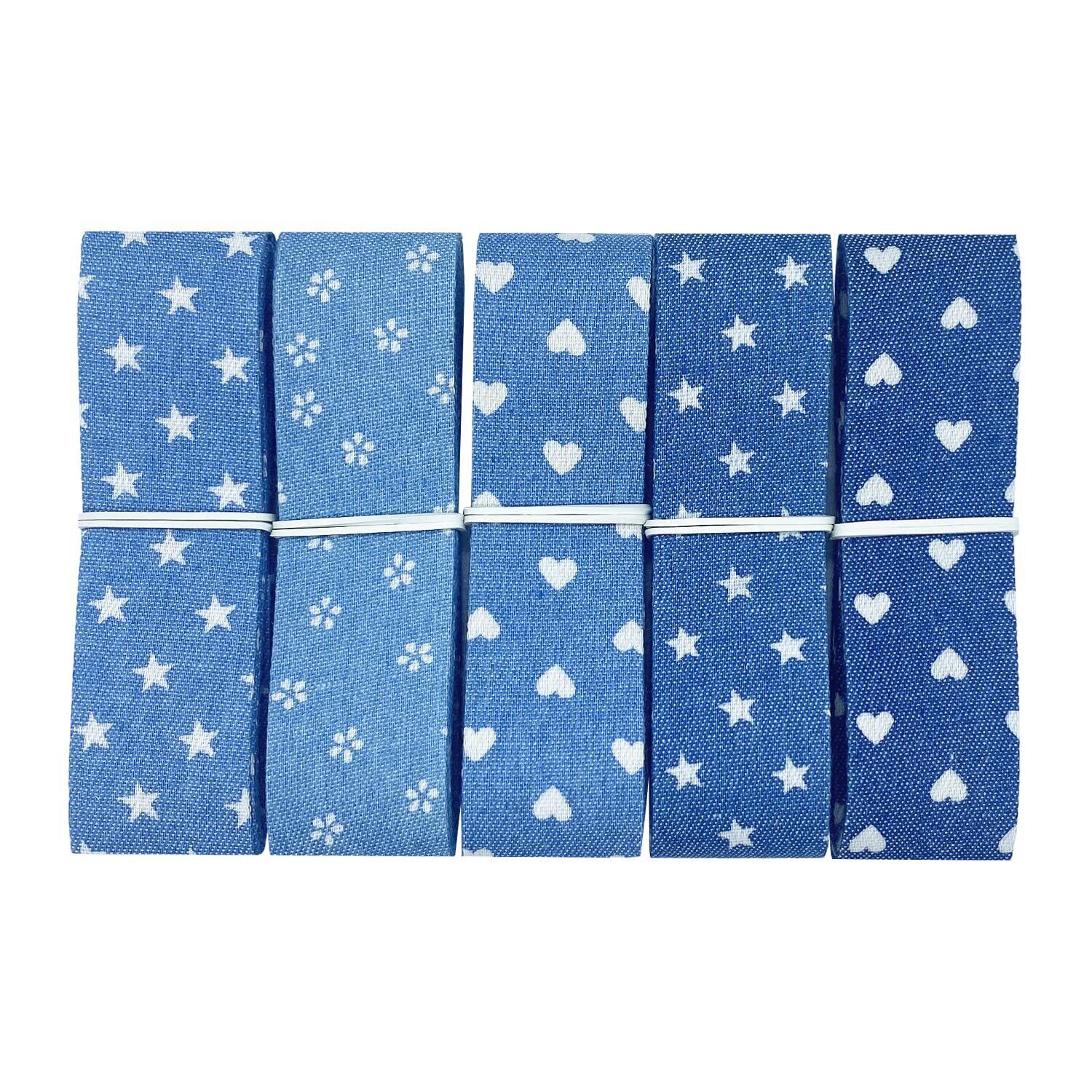 Shop Azalea(ショップ アザリア) リボン デニム風 可愛い 25mm×1m 5種類セットB デニムリボン 星 ハート 花 両折デニムリボンテープ
