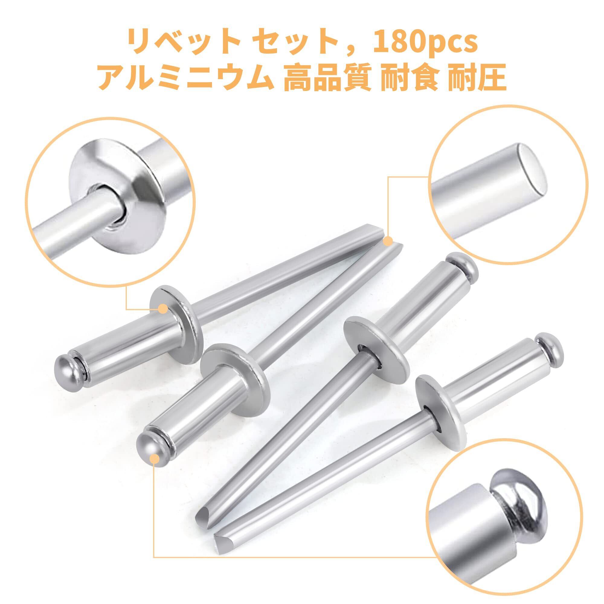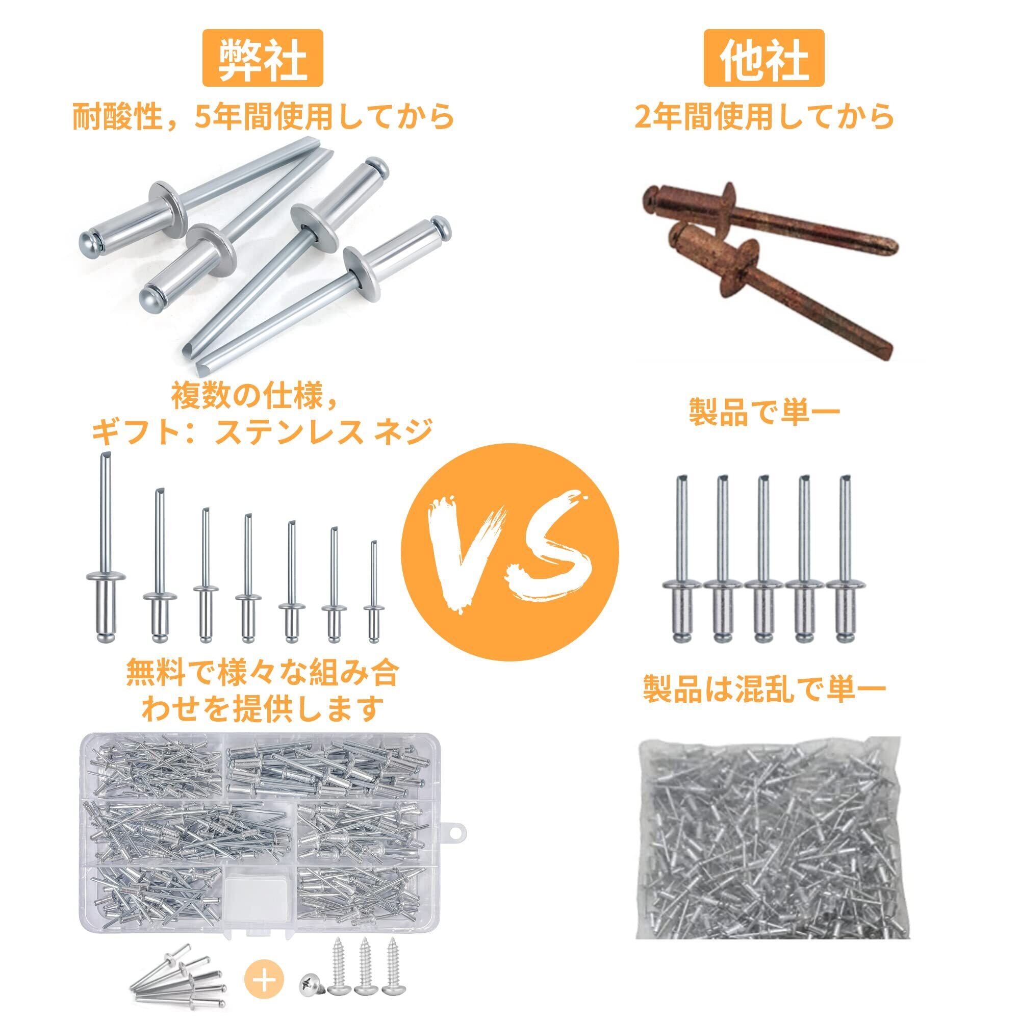 【リベット 高品質の材質】リベット セットは高品質のアルミニウム素材製造、肉厚で高硬度、耐食性と耐圧性が優れて、巧緻な外観と長寿命を持ってあリます。振動による緩みがありません。