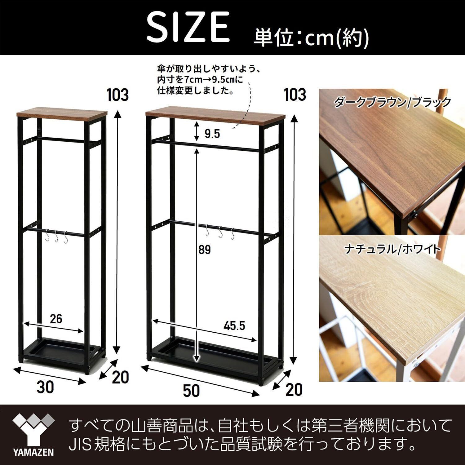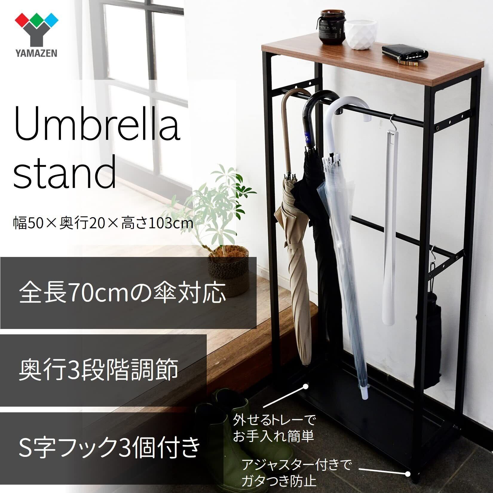 【2022最新】山善(YAMAZEN) 傘立て (傘かけ) 玄関 スリム 【70cm傘対応】 幅50×奥行20×高さ103cm S字フック3個 2段 バーの奥行が変えられる(3段階) 組立品 ダークブラウン/マットブラック RUS-50(DBR3/MBK) | gsmshop