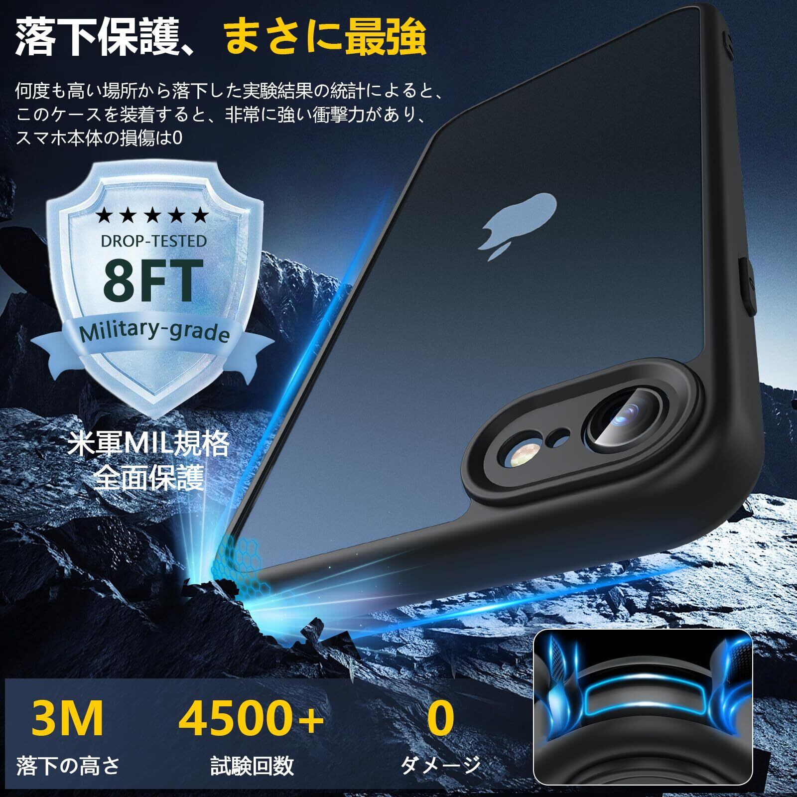 【抜群な耐衝撃性&細部までも保護】厳選された高品質なTPU+PC素材の組み合わせは、耐衝撃性、耐擦り傷性、耐汚れ性、耐久性に優れ、毎日の使用に安心の保護を提供します。また、液晶画面より1mm、カメラより1.2mm高さの高低差デザインに加え、カメラの周りを完全に覆うカメラレンズ保護設計を採用することでスマホ本体の保護を徹底し、平面に置いてもうっかり落としてもスマホをしっかり保護する iPhone se ケース です。