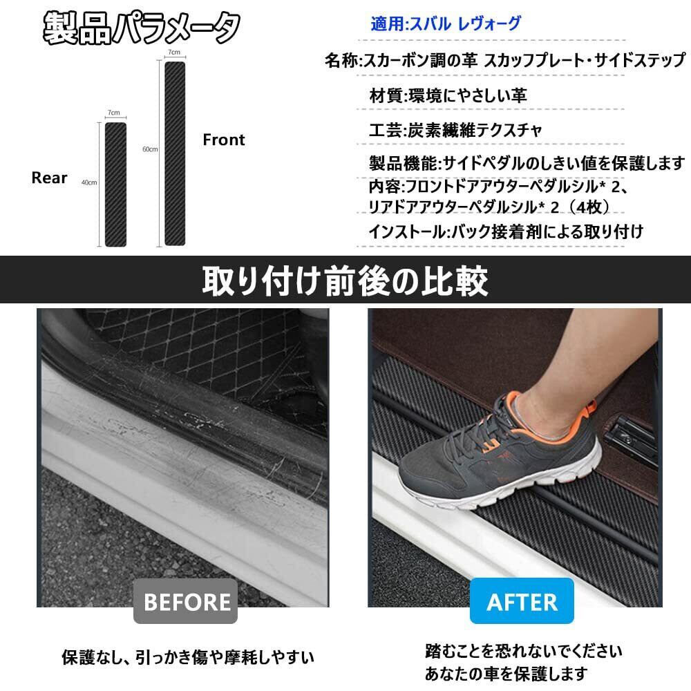 Xhfarce スバル レヴォーグ levorg VM系 VN系 専用 スカッフプレート サイドステップガード スカーボン調の革 スカッフプレート サイドステップ外側 ドアスカッフプレート ステップガード カバー ドア敷居トリムプロテクターガード ドア敷居プロテクター ステップガード 防キズ 防汚れ 4点セット