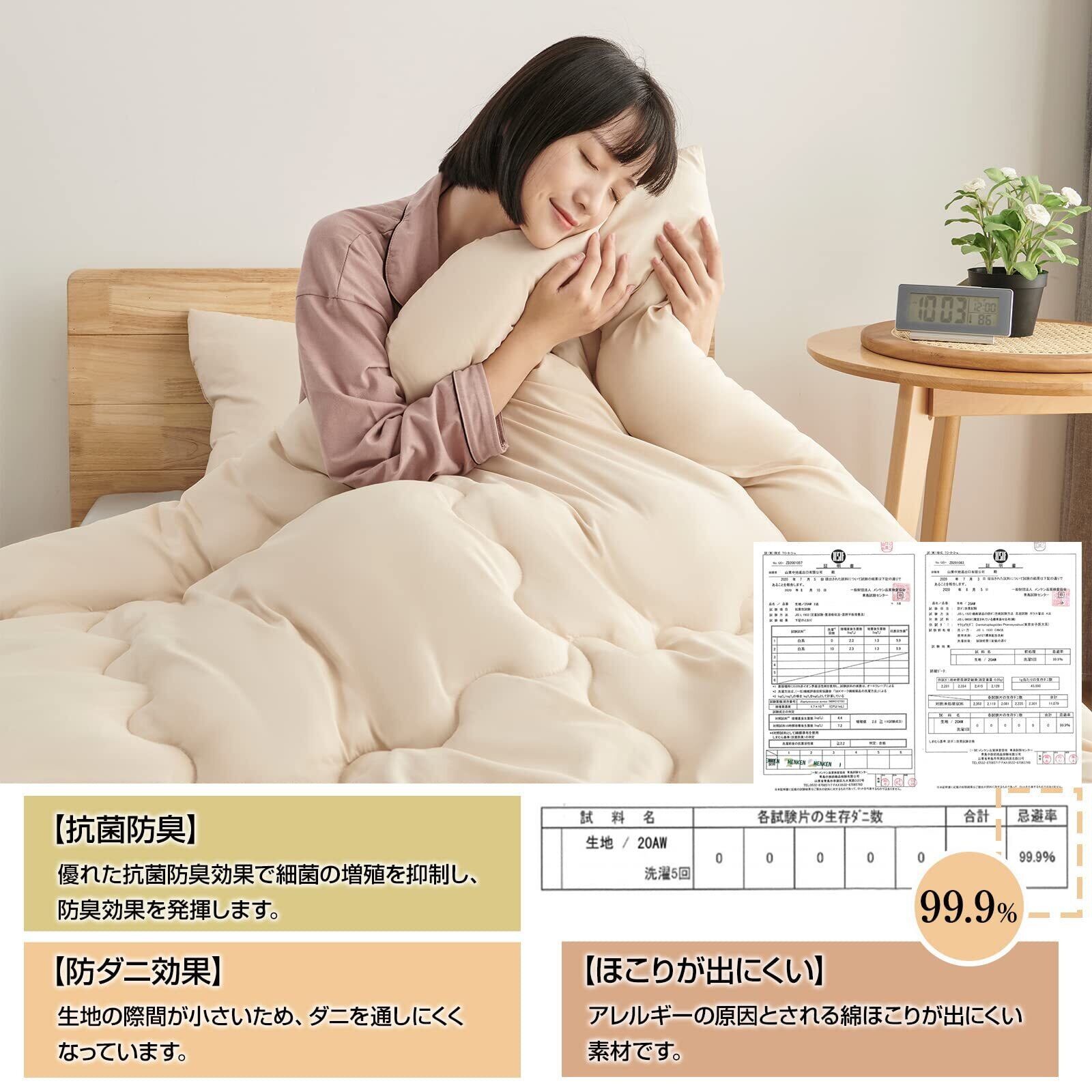 【暖かい·春夏秋掛布団】保温力を保ちながら、余分な湿気を放出。通気性がいい素材だから、湿気が多い時期でもムレずに朝まで快適に眠ることができます。保温性と軽さは優れて、寝心地が良い素材と生地で、一年中快適使用できる。