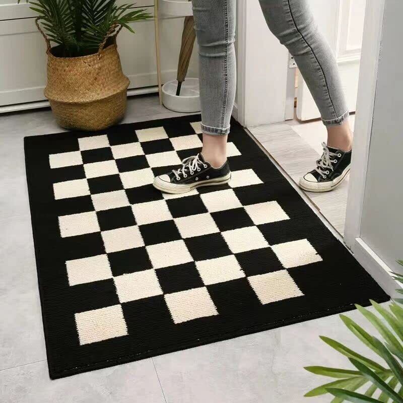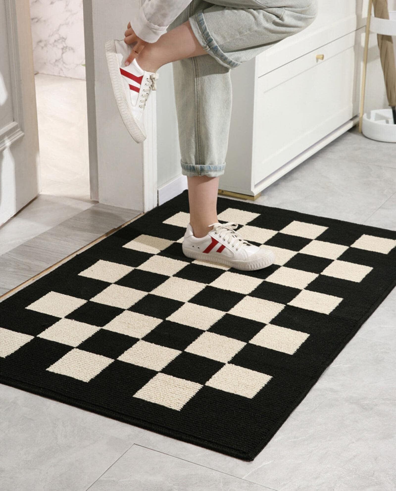 玄関マット ドアマット カーペット 室内 屋外マット おしゃれ シンプル 泥落としマット 泥除けドアマット 泥落とし 泥除け 砂落とし 洗える 滑り止め 防音 吸水 業務用 家庭用 店舗 オフィス 事務所 庭 (50x80cm, ブラックxベ一ジュチェック)
