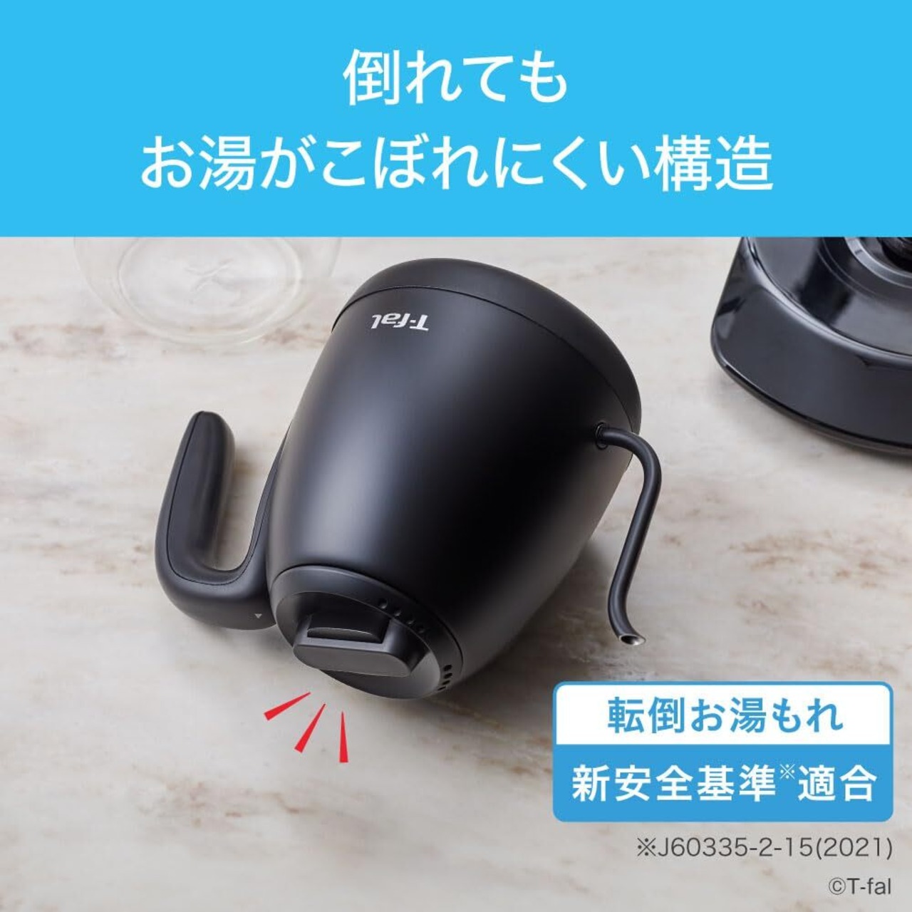 【在庫セール】ティファール 電気ケトル 0.8L ドリップ コーヒー 温度調節 1250 Wのハイパワーですぐに沸く 転倒お湯もれロック 「カフェ ロック コントロール」 保温 ケトル専用洗浄剤(1包)付き ブラック KO9208JPA | gsmshop