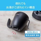 【特長5】倒れてもお湯がこぼれにくいロック機能付きの蓋で、やけどなどの危険性を少なくします