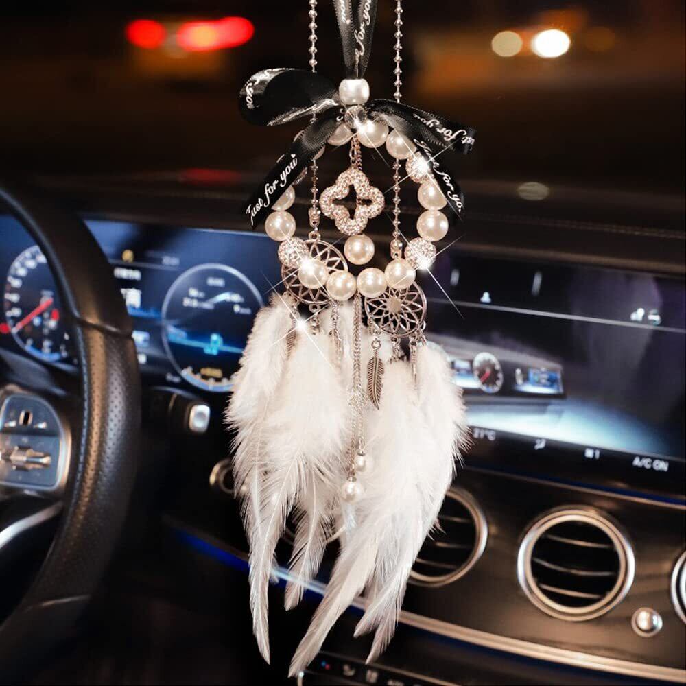 サムコス 四つ葉のクローバー ラッキー 真珠 きらきら ペンダント 車飾り 窓飾り おしゃれ 精緻 乙女心 かわいい プレゼント 人気 祝福 幸せ守る 小型で静か運転を邪魔しない