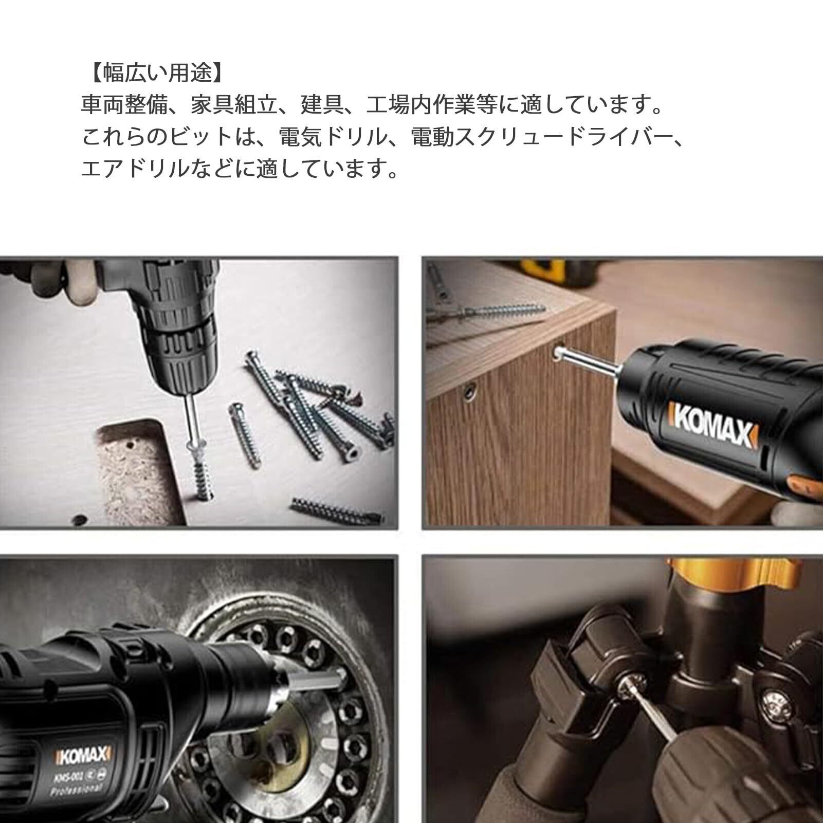 【幅広い用途】車両整備、家具組立、建具、工場内作業等に適しています。これらのビットは、電気ドリル、電動スクリュードライバー、エアドリルなどに適しています。