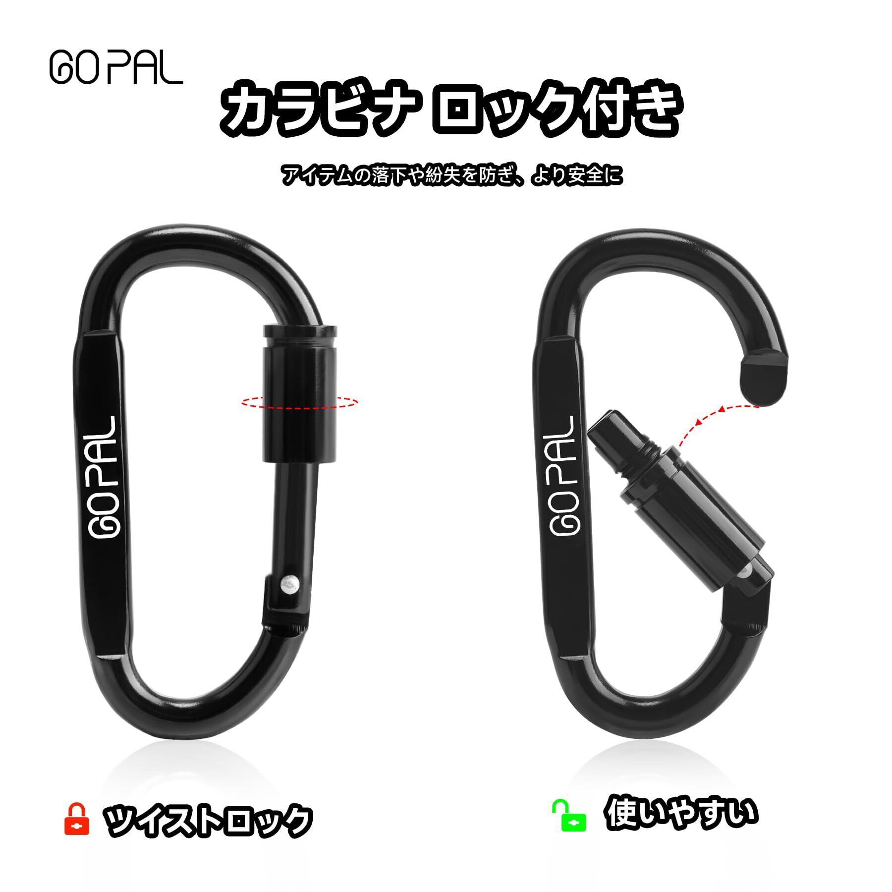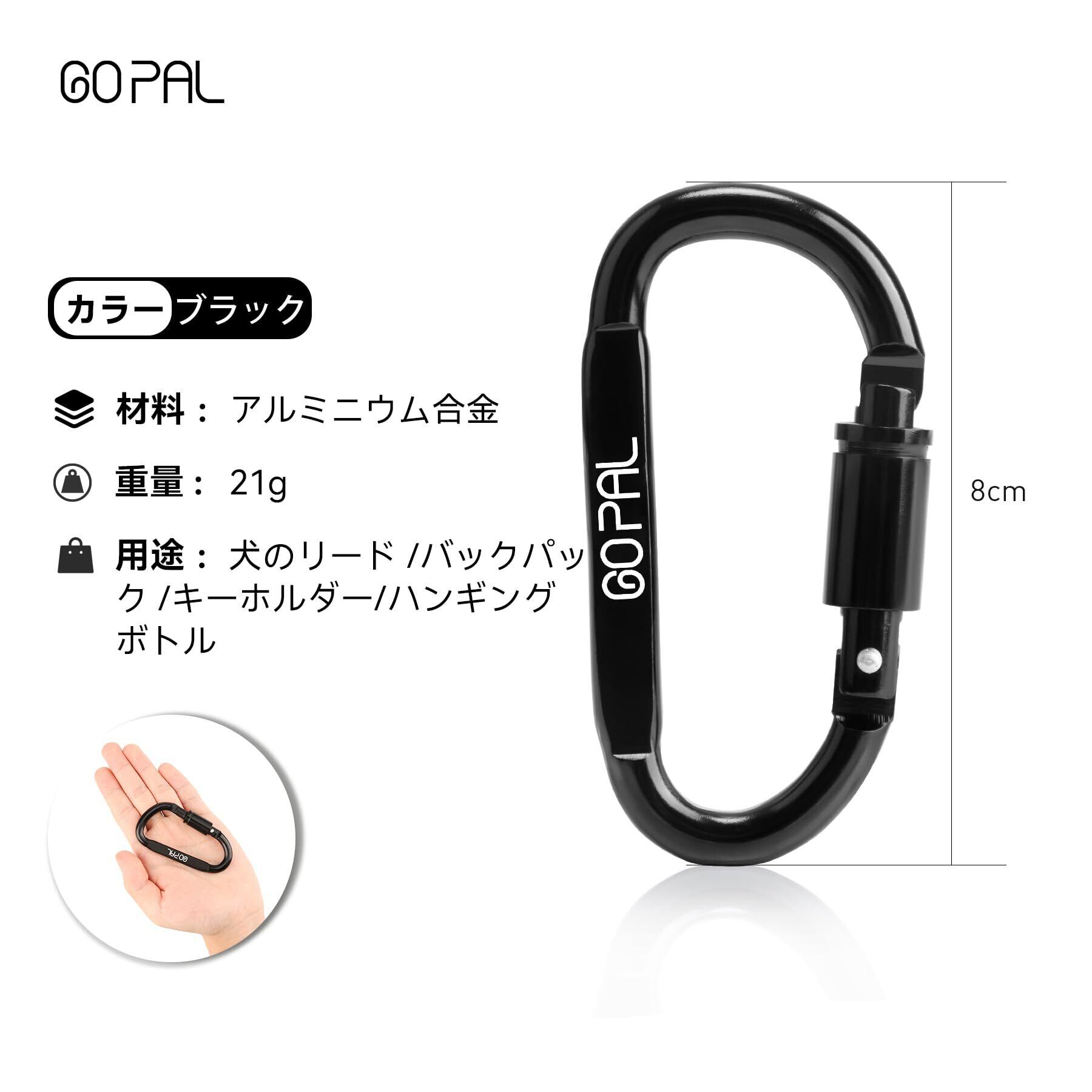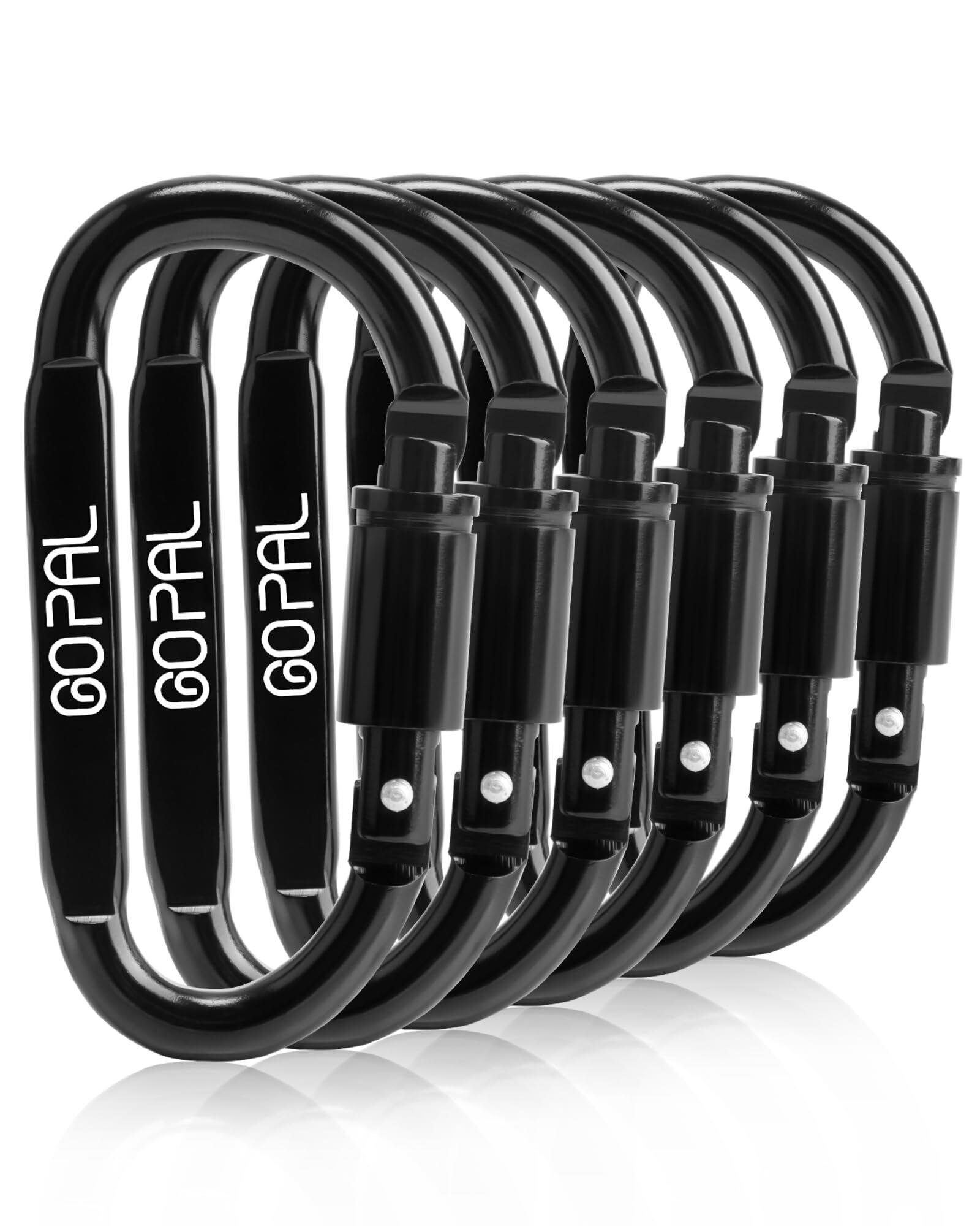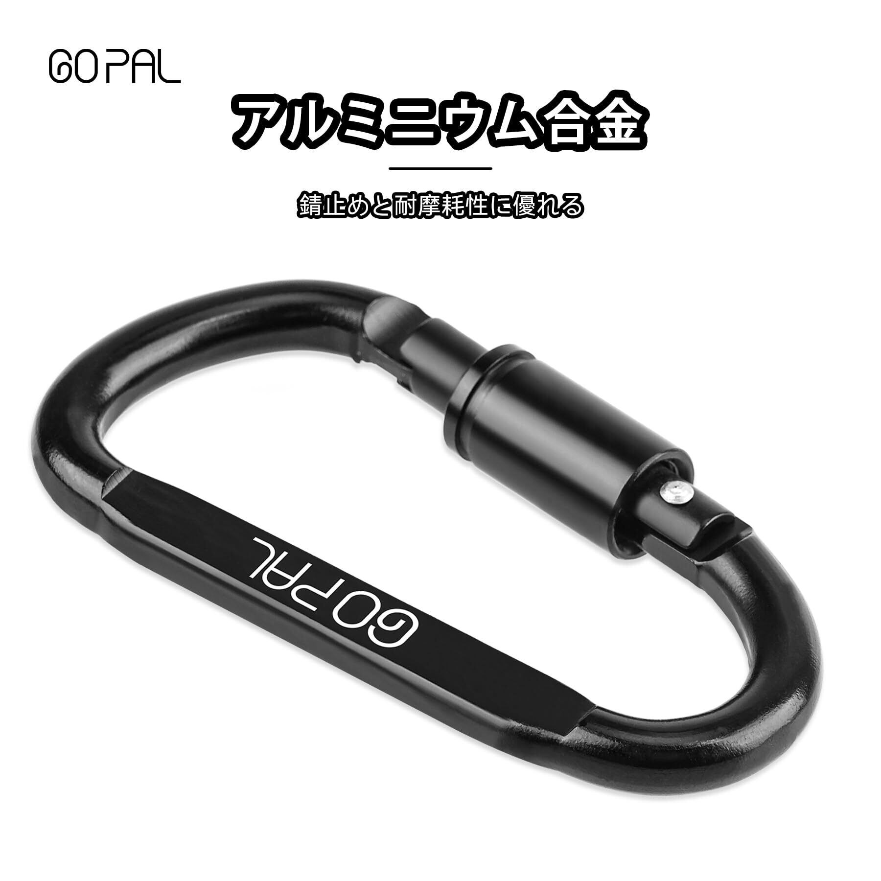 Go Pal GP03 ロックカラビナ おしゃれ 大型カラビナ ネジロック D型 軽量 ブラック オートロックゲート(ツイストロック) 6個入り