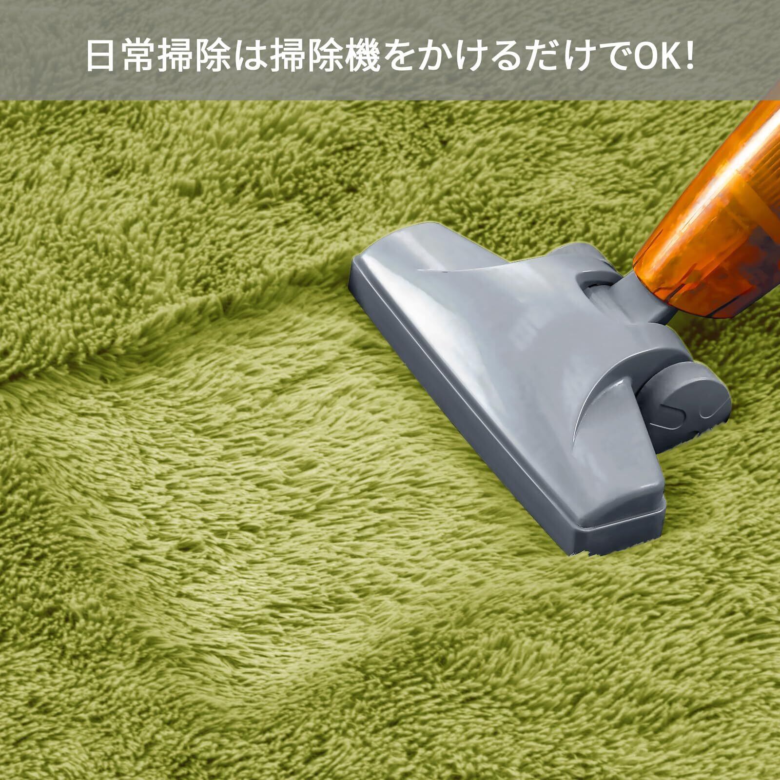 【長めの毛足・高級感あり】40mmの長い毛足で、しっとりなめらかな感触で気持ちいいシャギーラグです。ボリュームたっぷりのモフモフ感が魅力で、見た目も肌触りもよく、高級感にうっとり!また、100%極細繊維素材をしっかり裁縫されておるため、コロコロでも毛が抜けません。ゴミも絡みにくいので、日常掃除は掃除機をかけばキレイになります。さらに、お手入れ簡単で、手洗いまたは洗濯機で洗えます。