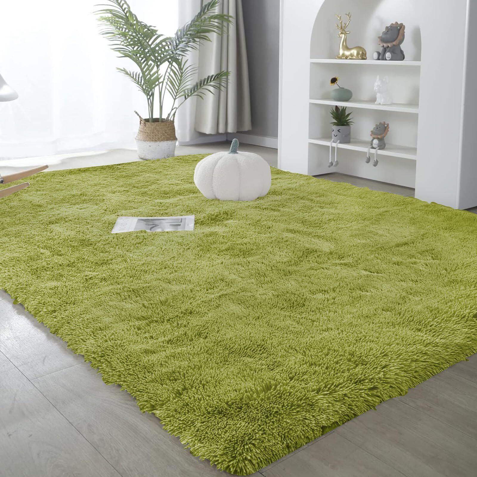 ラグマット カーペット 120x160cm おしゃれな北欧風シャギーラグ 全厚約5cm 洗えるラグ 滑り止め付き 毛足約4cm ふわっとした手触り 防音絨毯 オールシーズン快適に使用 長方形 ROCYJULIN(グリーン 約1.5畳 )