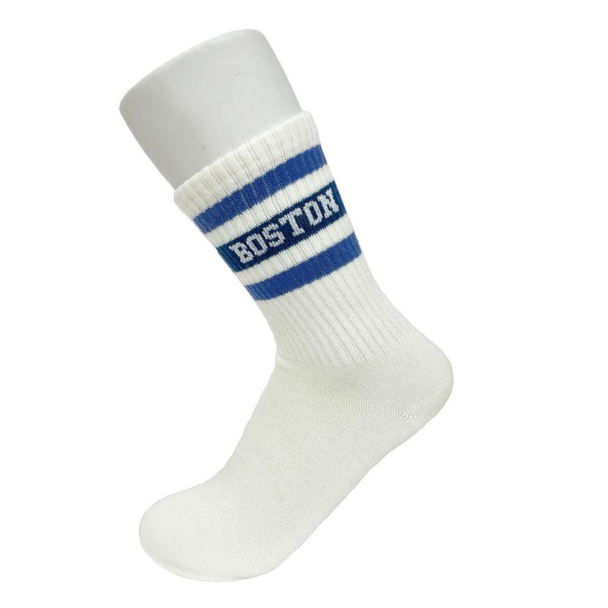 [Little Budding] カレッジロゴ 靴下 レディース ラインソックス クルー丈 カジュアル スポーティー 5柄5足組(22~25㎝)