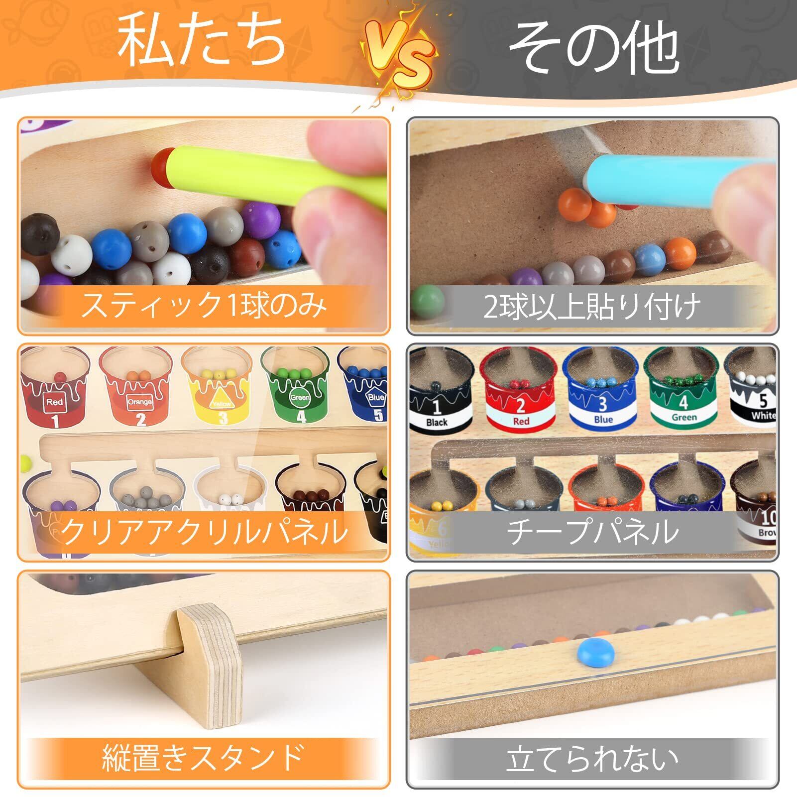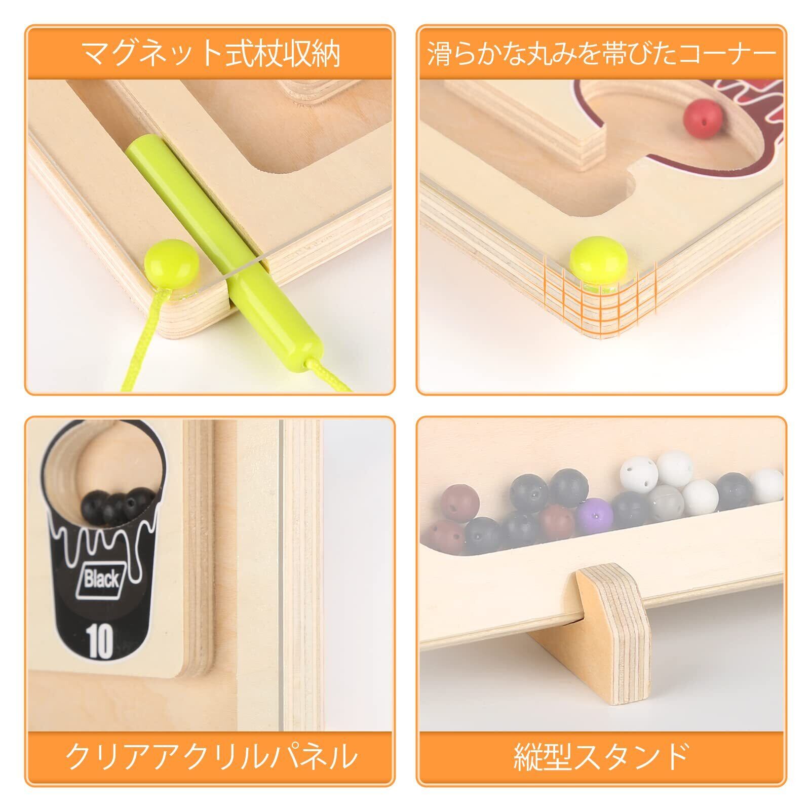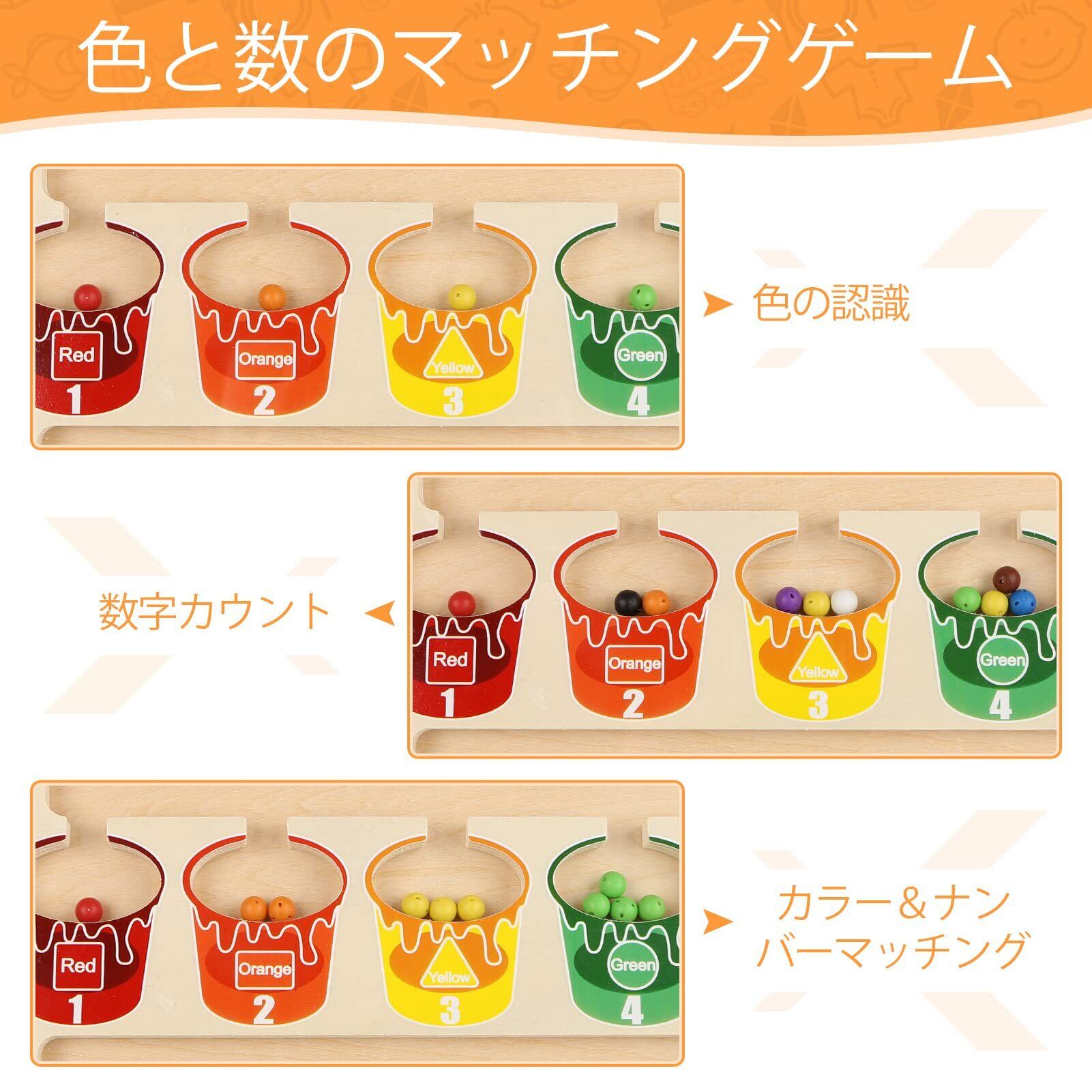 モンテッソーリ 玩具:色を探したり、数を数えるためのマグネット式幼児用ゲーム。木のおもちゃの迷路には、1~10の数字を表す10個の「ペイントポット」と、お子様が数を数えられるように10色の明るい色の65個のマグネットビーズが組み込まれています。3、4 5 6 7歳のお子様への知育おもちゃ的な贈り物として最適です。