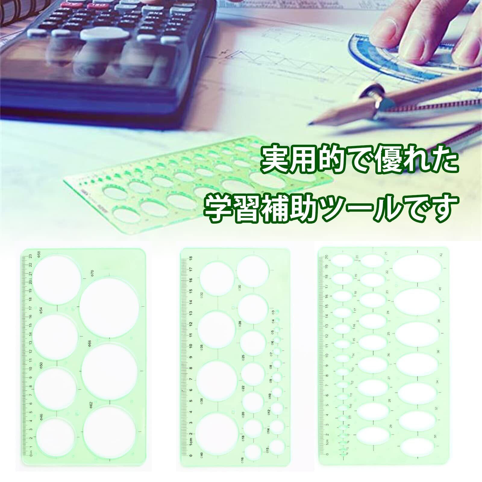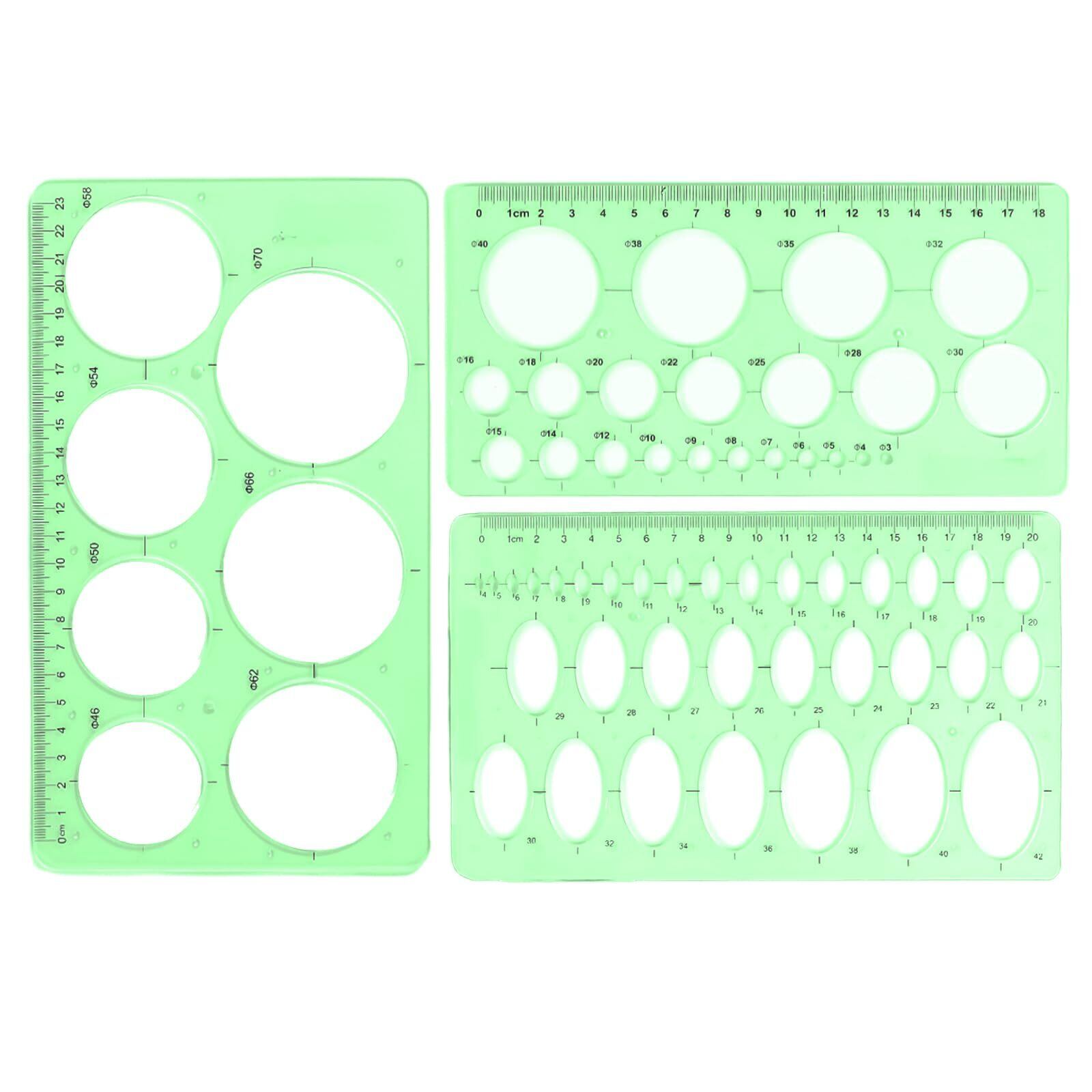 YFFSFDC 定規 円定規 透明 テンプレート 3枚セット 円 楕円 製図 用具 透明幾何図面 計量製図用品 学校教育用 建築科用
