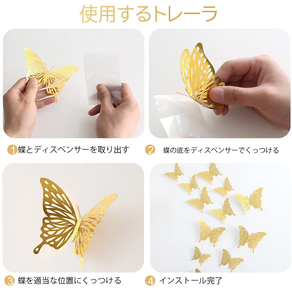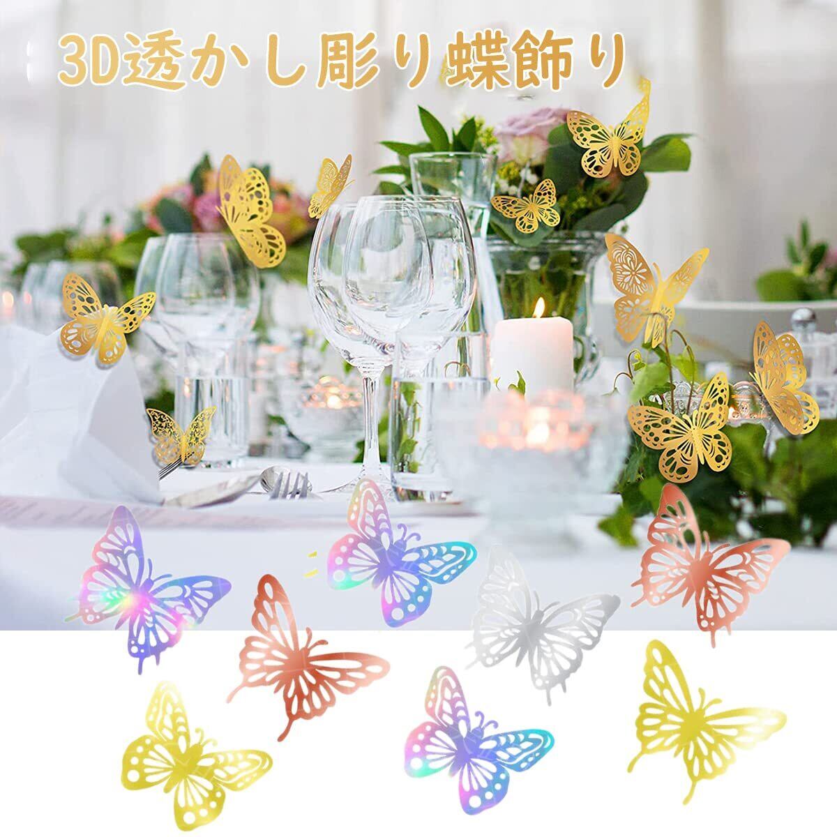 【パッケージ内容】36個の透かし彫りの蝶のステッカーで装飾されています。 カラー、ゴールド、シルバー、ローズゴールドの4色があります。