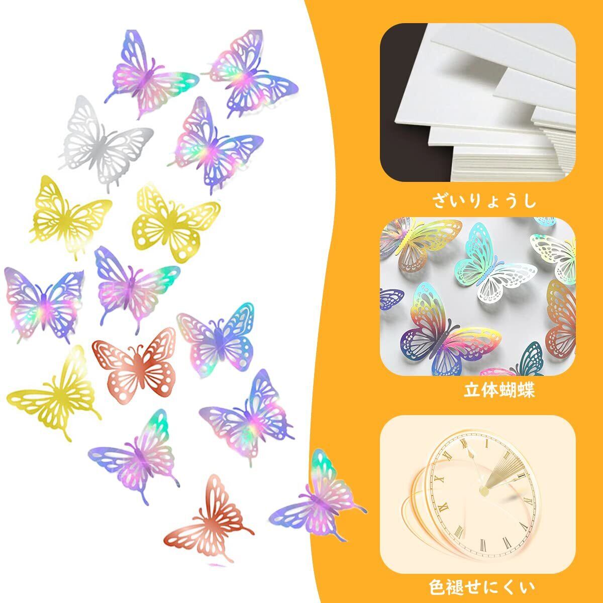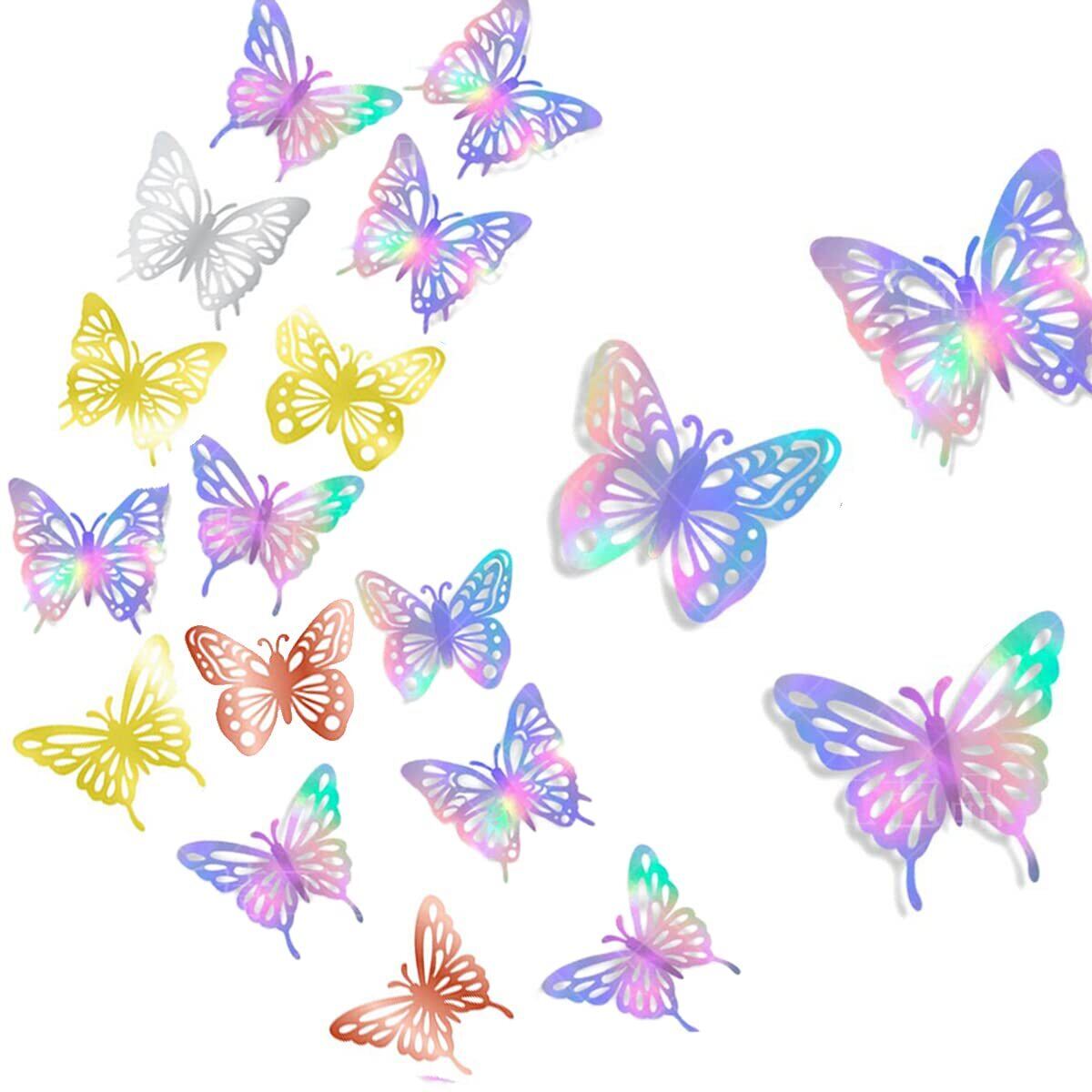 【高品質素材】蝶の飾りは3Dホロリングで設計されており、高品質の光沢紙素材、非毒性、環境フレンドリー、曲げられる翼のためのボディで作られています。 蝶の装飾を美しく、優雅にします。