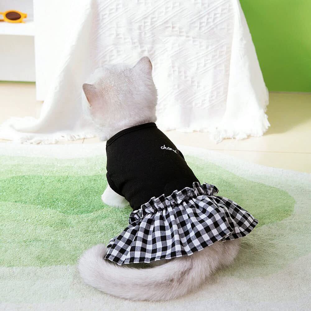 【可愛い】単色のTシャツ、とチェック柄の裾、おしゃれ なワンピース設計して、毎日一緒に生活する愛犬が自宅でも散歩中でも、外出先でもこんなオシャレな服を着せると、注目を浴びるアイテムに間違いなし。