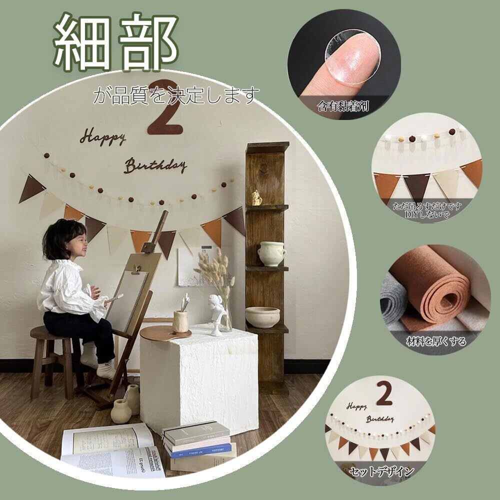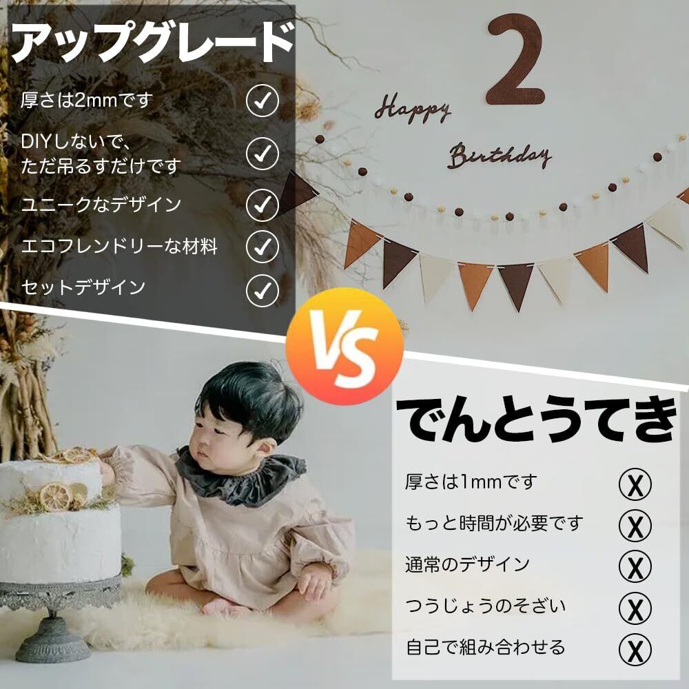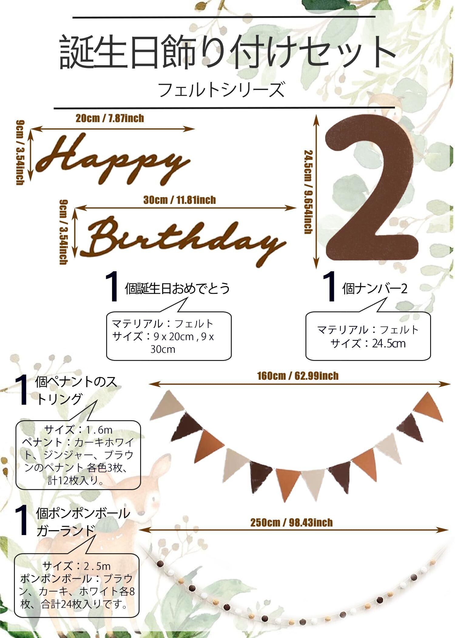 充実のセット内容 happy birthdayフェルト生地バナーx1、160cm フェルト生地フラッグガーランドx1、パーティー帽子x1、250cm フグボールガーランドx1。24.5cm 2歳の数字x1、質が高いですので、きちんと保存すれば、後にも持続に使用でき、コスパが高いです。