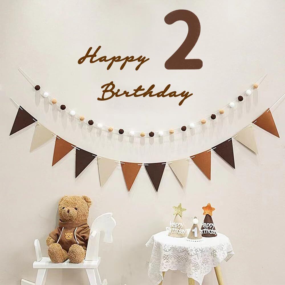 Uchi 2歳 誕生日 飾り 可愛いシンプル 誕生日 飾り付け セット 女の子 男の子 高級生地 壁に飾る用のhappy birthdayフェルト生地バナー、フェルト生地フラッグガーランド、2歳の数字、フグボールガーランド、 パーティー帽子、バースデー 飾り 誕生日 飾り 大人 写真背景 子供 飾り お祝い 2nd Birthday Party Decorations