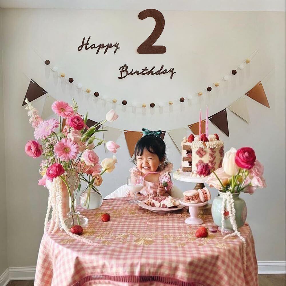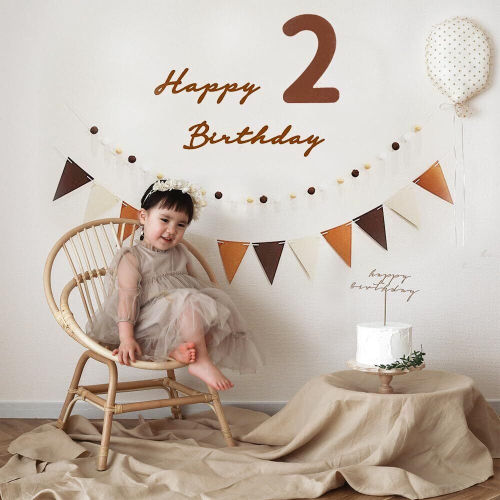 【2022最新】Uchi 2歳 誕生日 飾り 可愛いシンプル 誕生日 飾り付け セット 女の子 男の子 高級生地 壁に飾る用のhappy birthdayフェルト生地バナー、フェルト生地フラッグガーランド、2歳の数字、フグボールガーランド、 パーティー帽子、バースデー 飾り 誕生日 飾り 大人 写真背景 子供 飾り お祝い 2nd Birthday Party Decorations | gsmshop