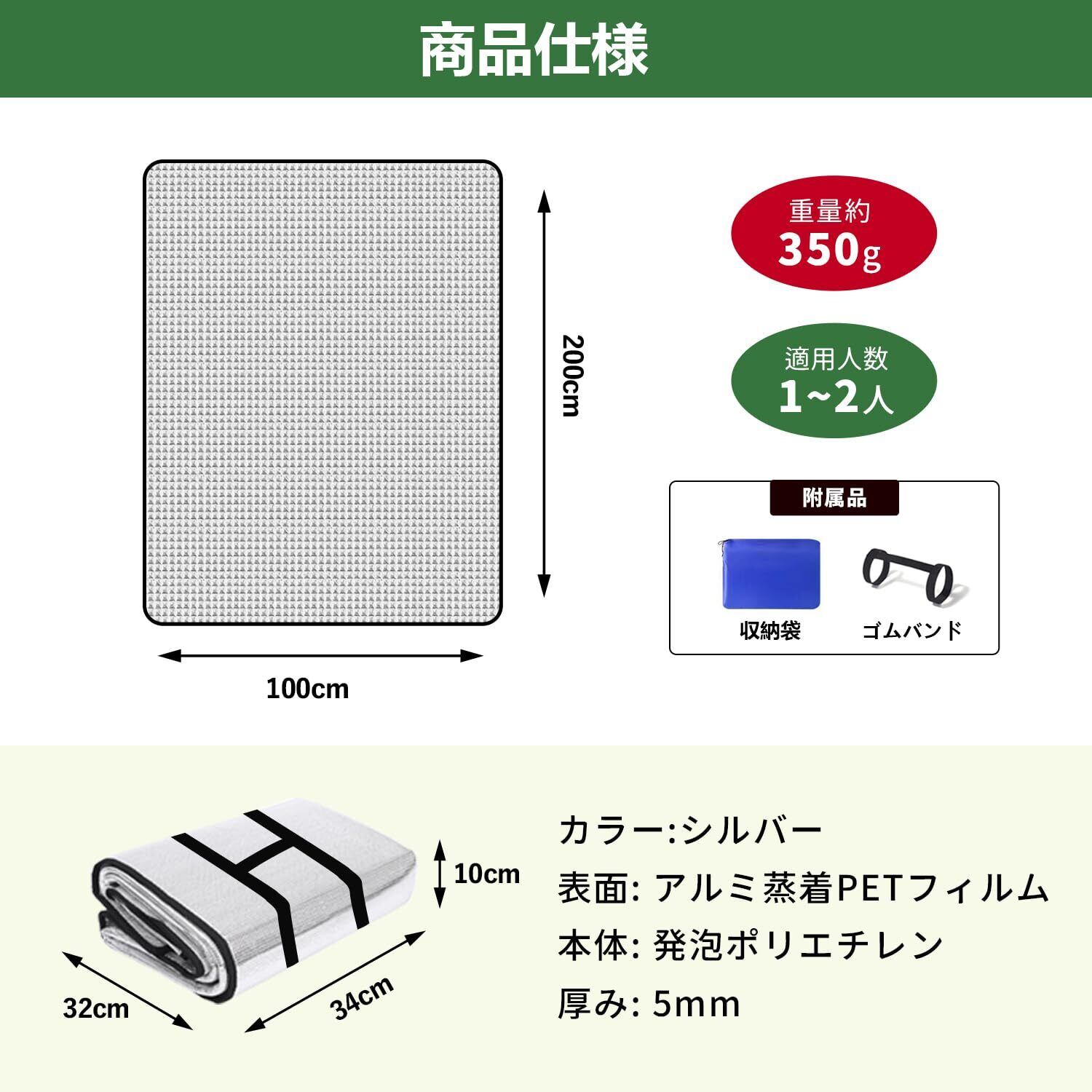 【商品詳細】 アルミシートの仕様:(長さ100/150/200/250cm×幅200cm×厚さ5mm、重さ約350/500/650/800g )素材:両面アルミ製、中間発泡ポリエチレン、キャリングバッグ、収納用ゴムバンド