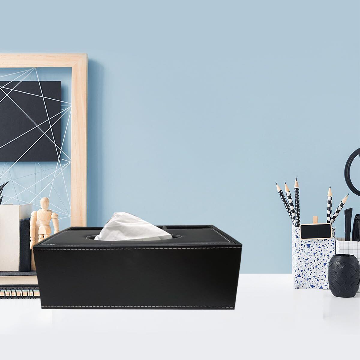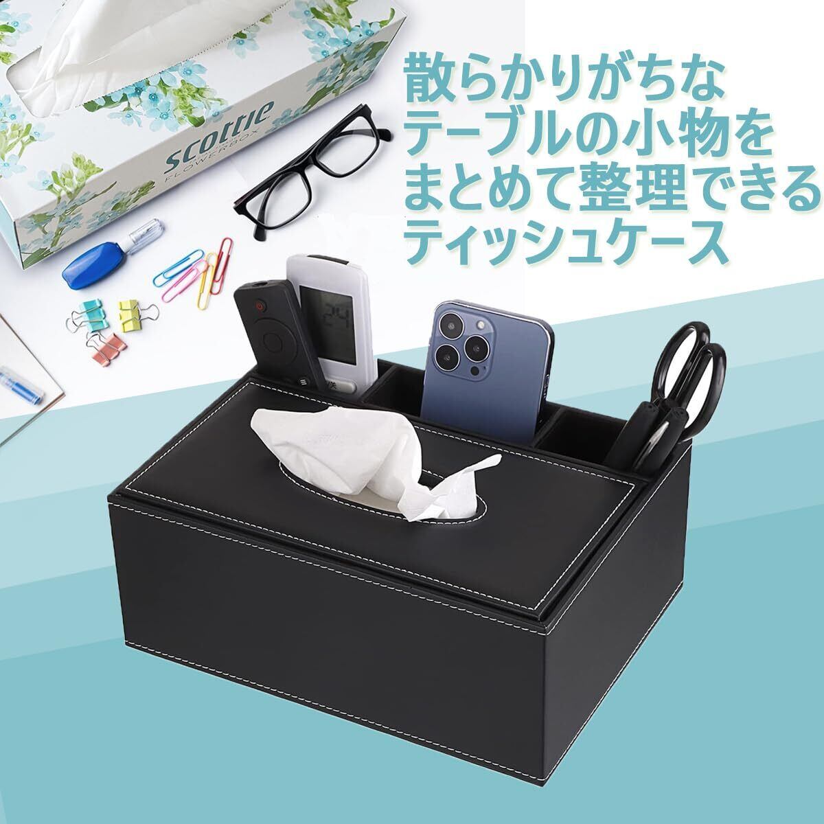 収納ボックス付きティッシュケース:ティッシュケースの上には小物置きスペースがあるので、リモコン、スマートフォン、メガネ、文房具、化粧品、雑用などのテーブル周りの小物をすっきり収納ストレージ、必需品の自宅収納ボックスです。