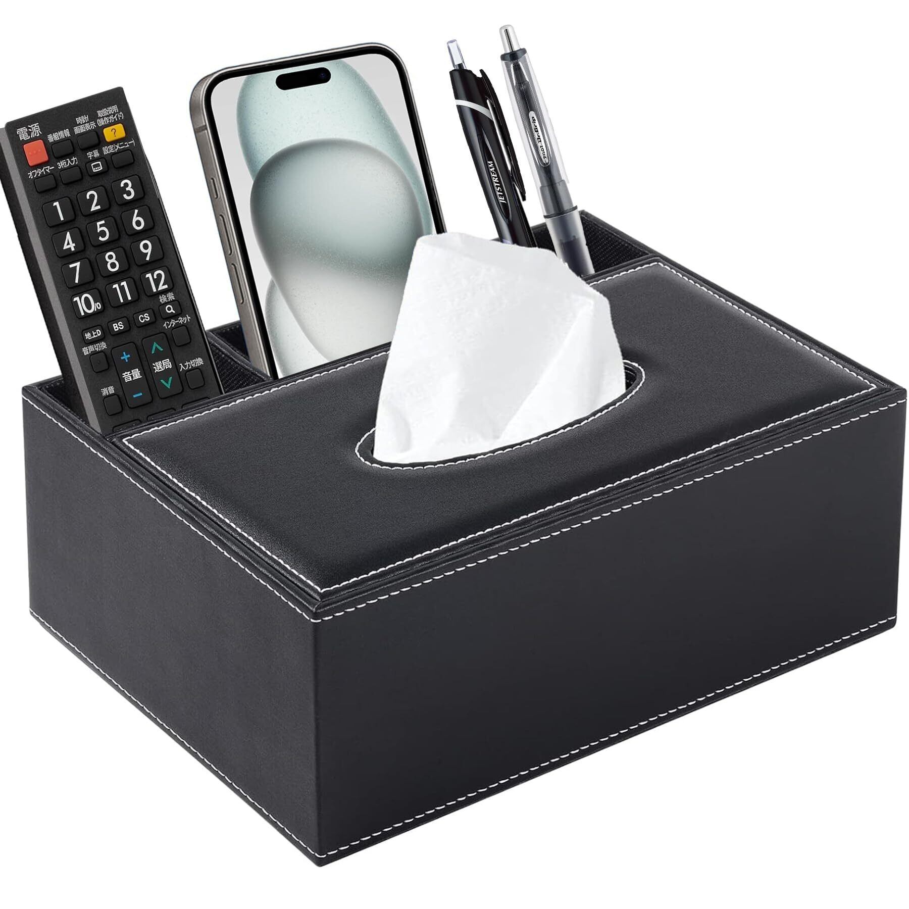 ティッシュケース 卓上収納ケース 多機能 リモコンスタンド リモコンラック おしゃれ ティッシュボックス リモコンケース ペン立て 仕切り付き 小物入れ おしゃれ 卓上 収納 オフィス 家庭用
