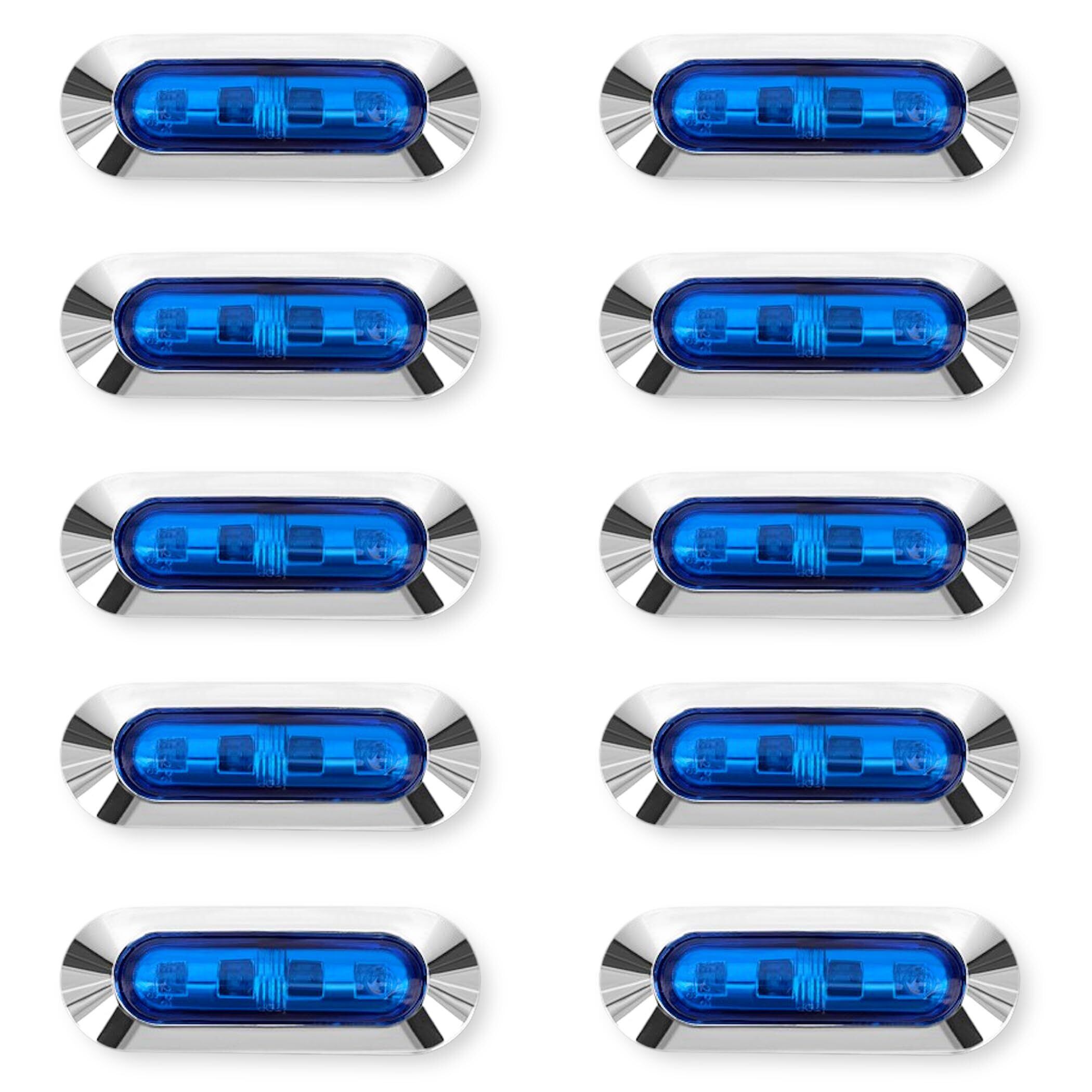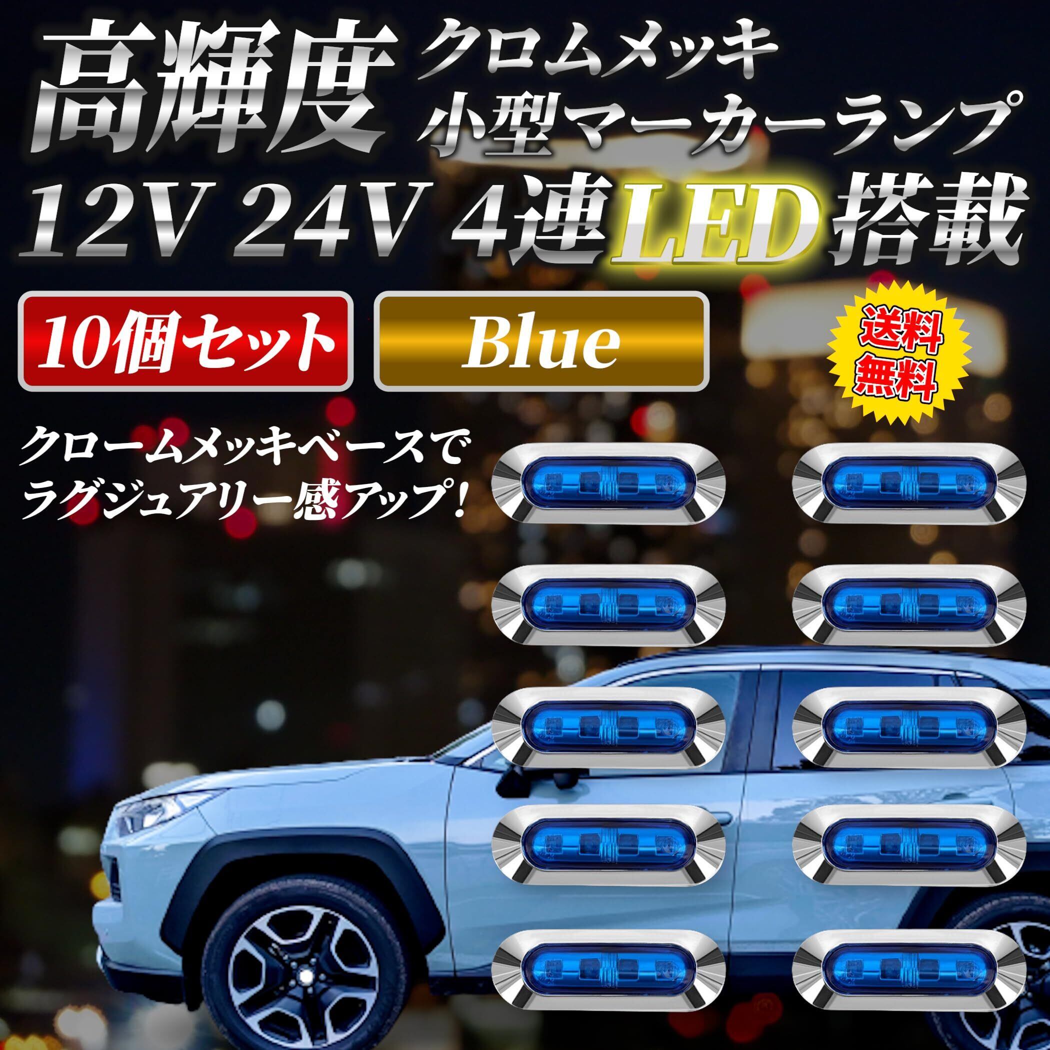 Lezalic LED 4連 カラーレンズ 10個セット 12V 24V 高輝度 小型 ランプ サイド マーカー 防水型 トラック メッキ カスタム (ブルー)
