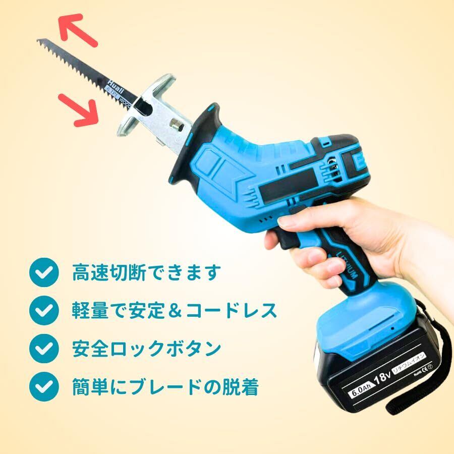 【在庫セール】マキタ Makita 対応 コードレス レシプロソー 替刃 4本付き 充電式 セーバーソー 電動のこぎり 切断 ノコギリ 小型 14.4V 18V マキタ バッテリー 対応 makita 互換 家庭用 工具 ※ 充電器 バッテリー 別売り (本体+刃(4本)) | gsmshop