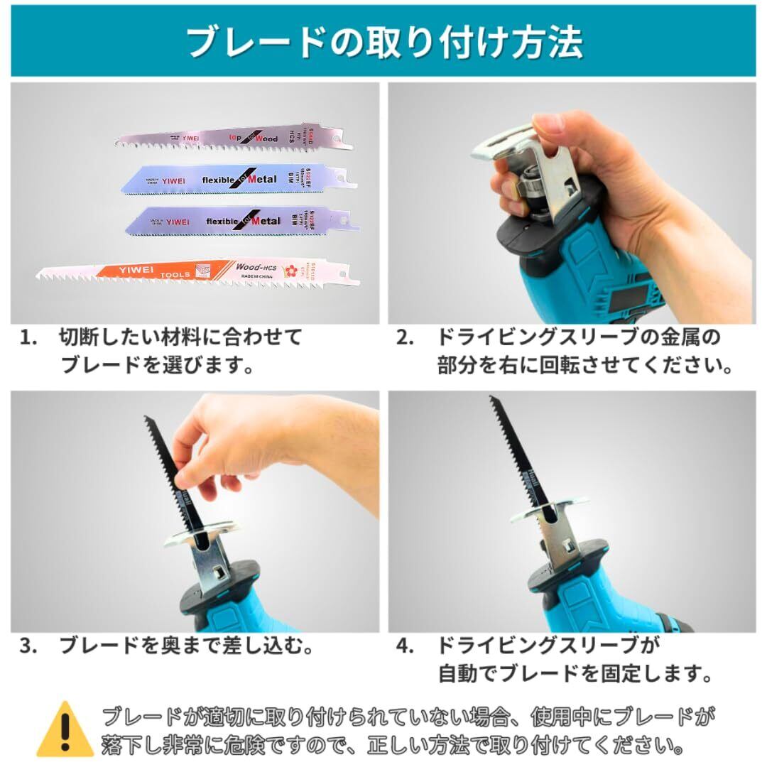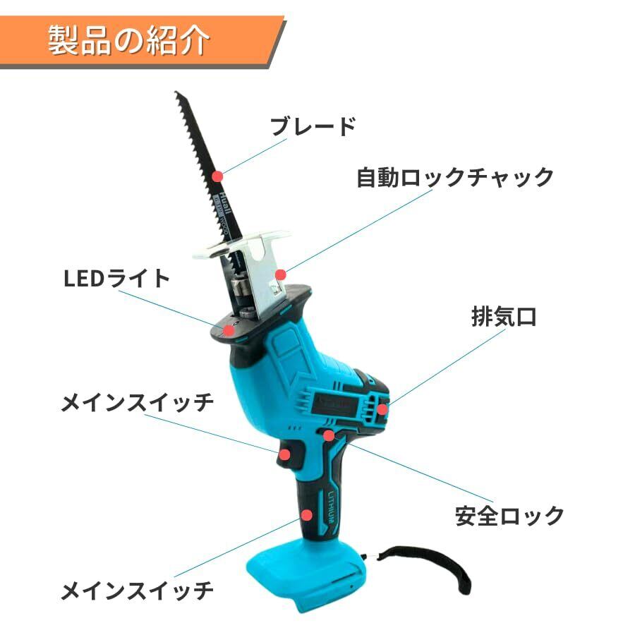 マキタ Makita 対応 コードレス レシプロソー 替刃 4本付き 充電式 セーバーソー 電動のこぎり 切断 ノコギリ 小型 14.4V 18V マキタ バッテリー 対応 makita 互換 家庭用 工具 ※ 充電器 バッテリー 別売り (本体+刃(4本))