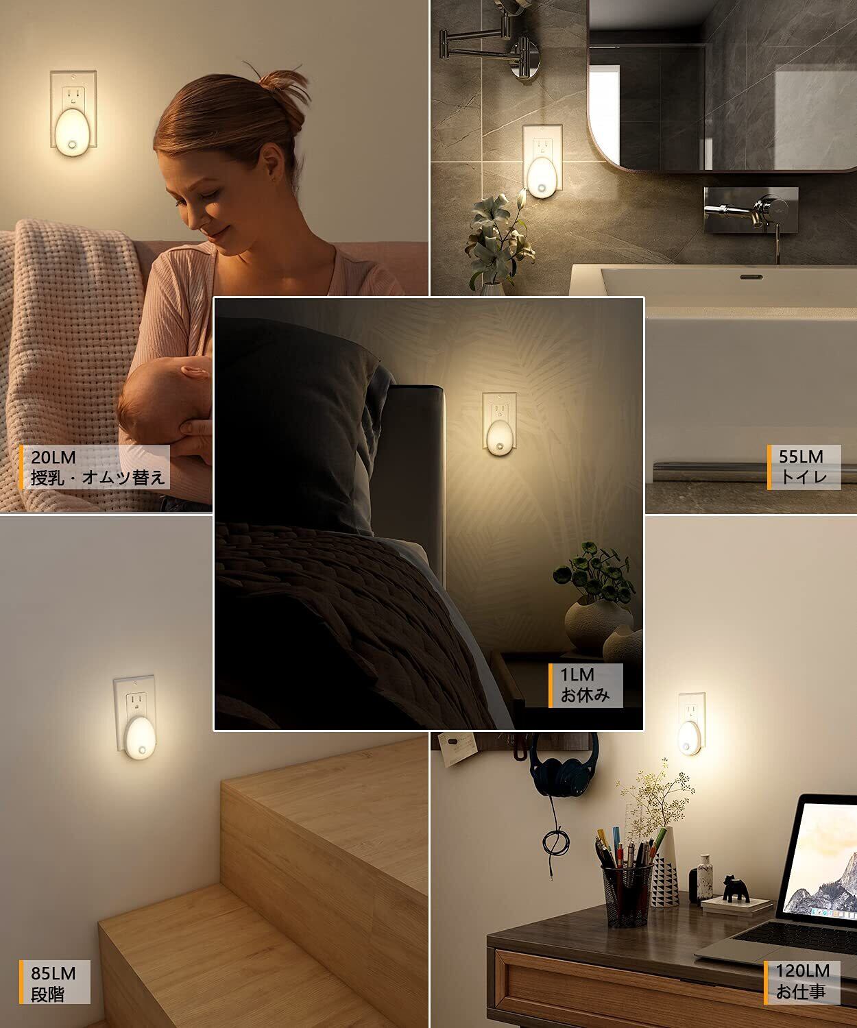 【2022最新】Lyridz LEDセンサーライト 足元灯 コンセント 人感センサーライト 室内 常夜灯 1〜120ルーメン無段階調光 省エネ フットライト 3モード 廊下 玄関 階段 電球色 【2個セット·PSE取得済·日本語取説】 | gsmshop