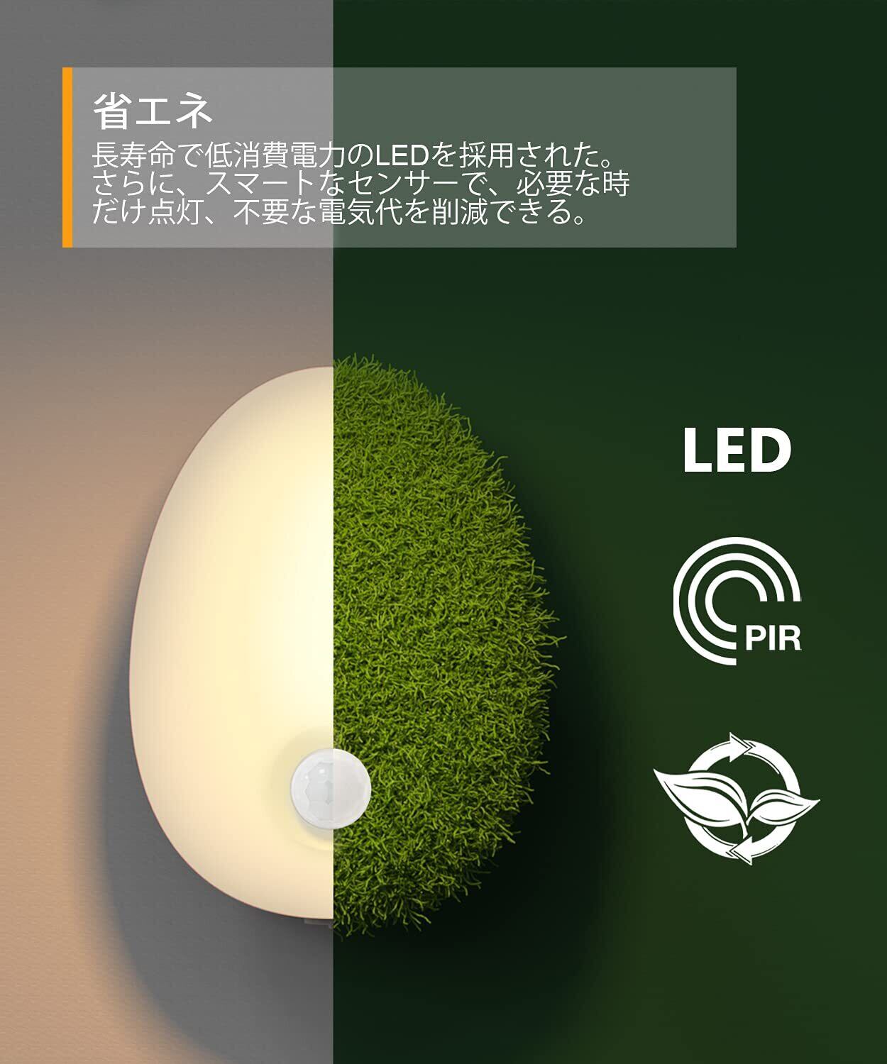 【省エネ耐久性強い】光源にLEDを採用することで、消費電力が白熱ランプの1/10、蛍光ランプの1/4で、寿命が理論的に10万時間を超えります。そして、センサーモードでは、必要な時だけ点灯、不要な電気代を削減でき、経済的です。
