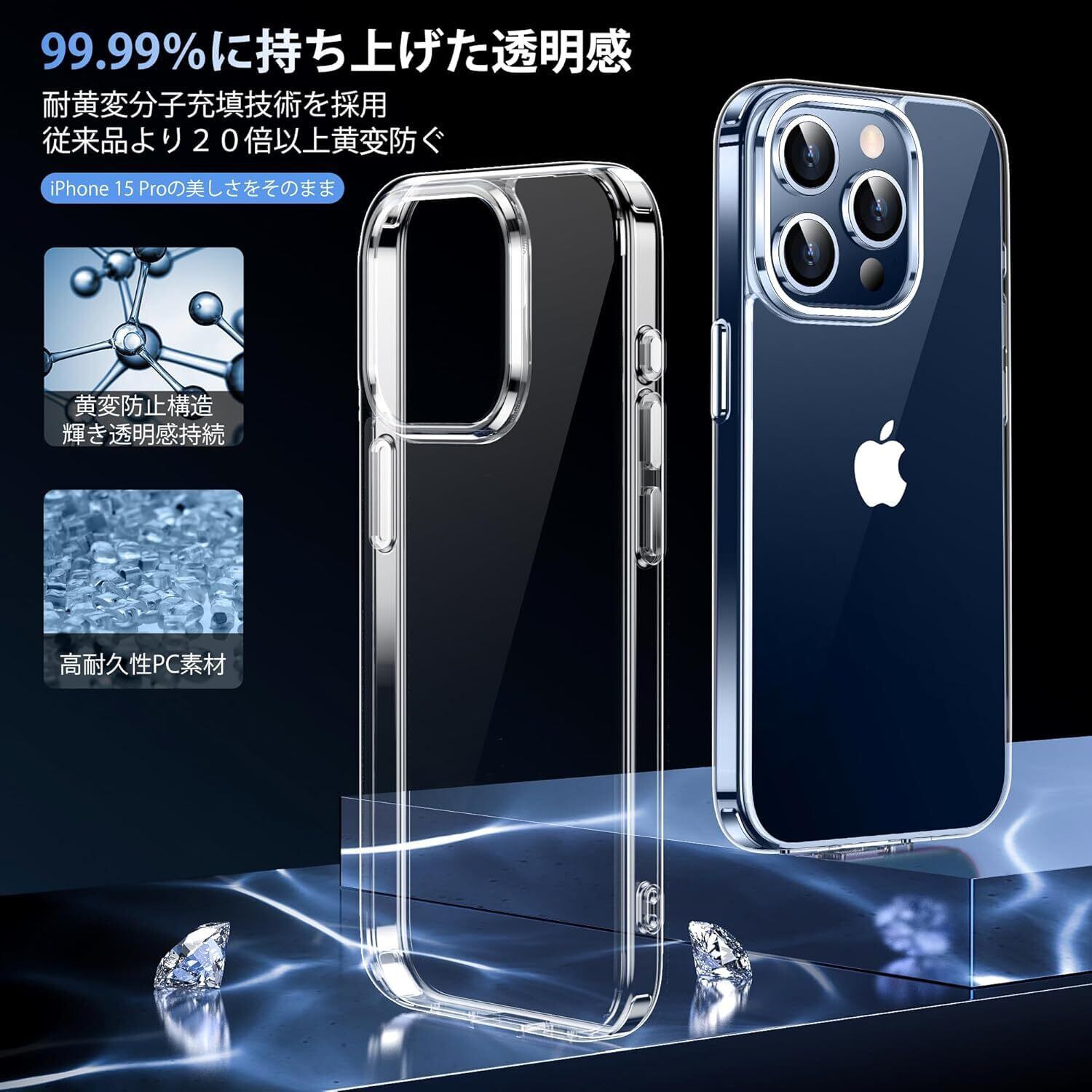 【透明感漂う・指紋防止】 背面に高透明度と指紋軽減を両立した特殊PC素材を採用、背面の光透過率は99%、透き通った高い透明度を誇り、アイホン15Pro の美しさをそのままに楽しめます。厳選したポリカーボネート素材で、本来の崇高な美しさと高級感を損なわなく、高精度表面処理またケース全面に防汚バイオニック技術を使用したことで、指紋を防げ、指紋や汚れが付いても、水洗いと布で軽く拭くとピカピカになります。いつものスマホに上品さをプラス。