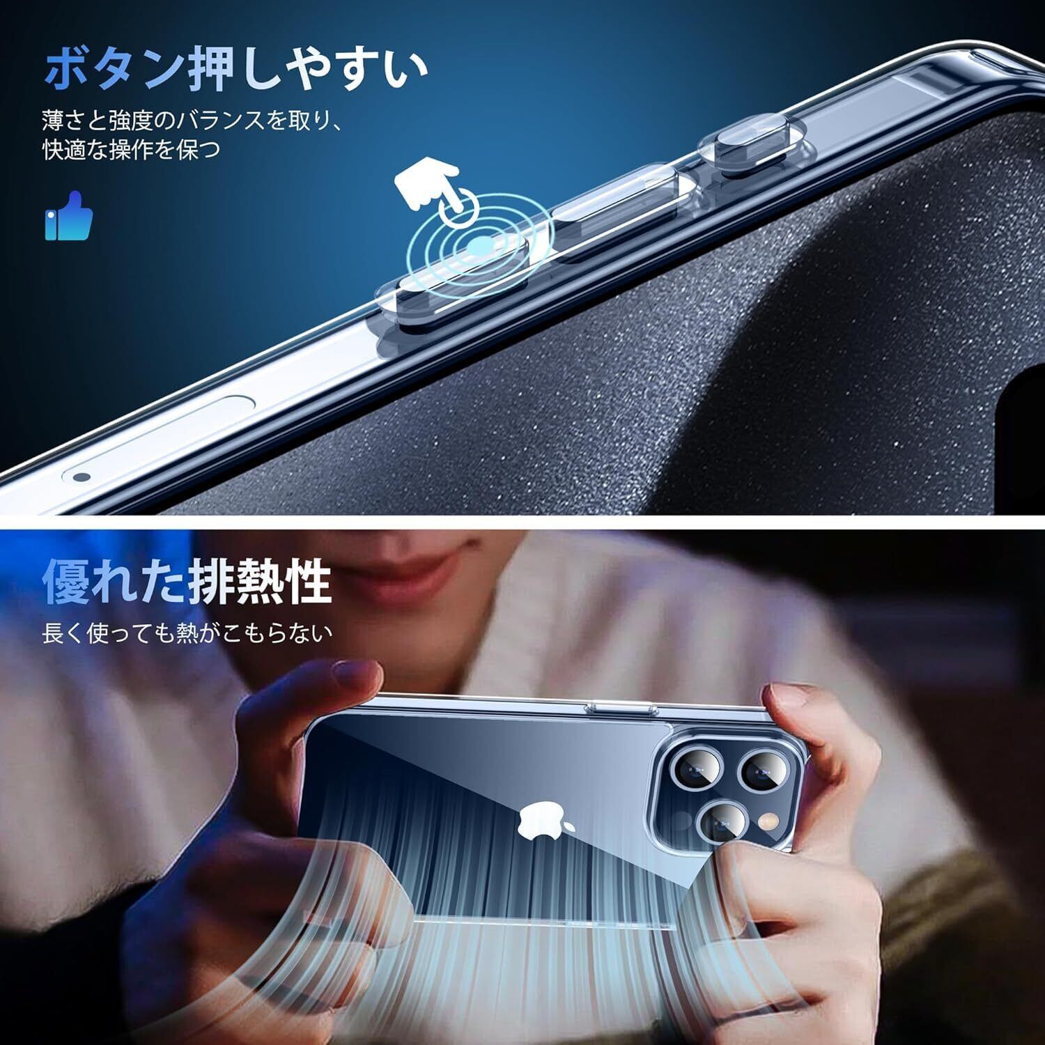 【絶妙バランス・快適操作】クリアケースの保護性能を保ちながら、スマートさを損なわないよう、薄さと強度のバランスを取り、手にフィットする程よい厚みで、快適さが保ち、ボタンも押しやすく、最適な設計で作り出す。背面高透明度のポリカーボネートと側面はSGS認証されたドイツ製のTPU素材の組み合わせで、装着・脱着も簡単になります。ワイヤレス充電やApple Payにも対応します。