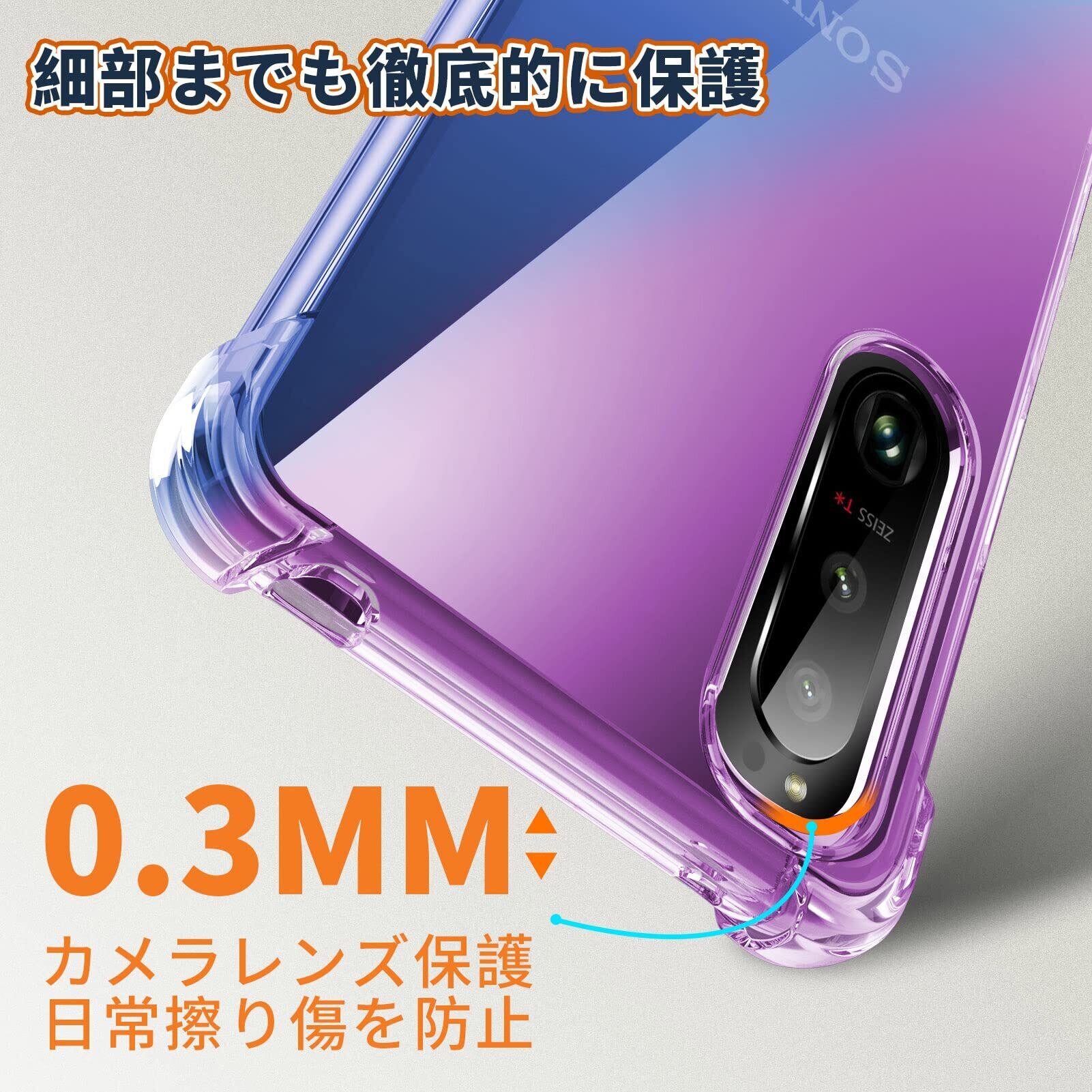 xperia5 II ケース 耐衝撃 クリア 薄型 軽量 TPU 黄変防止 米軍MIL規格 特徴 透明 一体型 SO-52A SOG02 カバー 衝撃吸収 スマホケース 紫+青 LR-08-XP5II-02