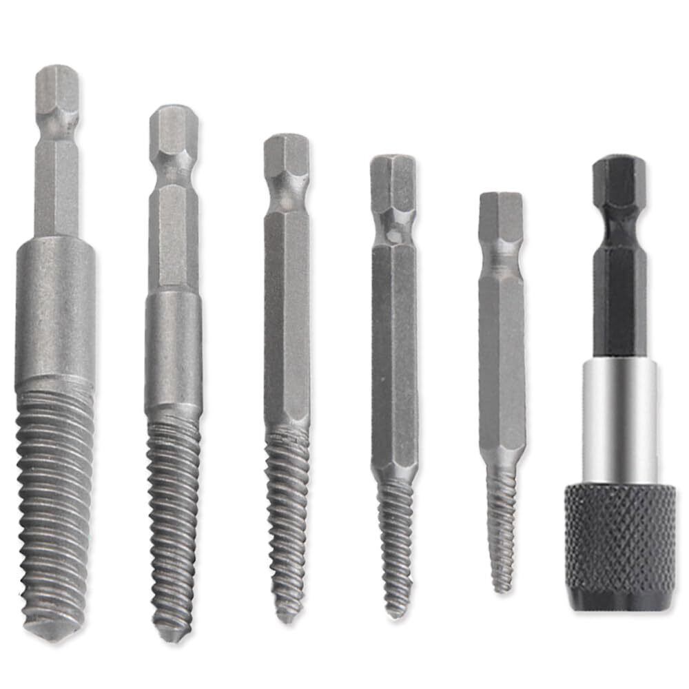 スクリューエキストラクター 六角軸ネジ取りビット 六角ハンドル ポストリムーバー付き ハンド ネジ山補修キット 逆タップ 抜き取り器 なめたネジはずしビット 6本