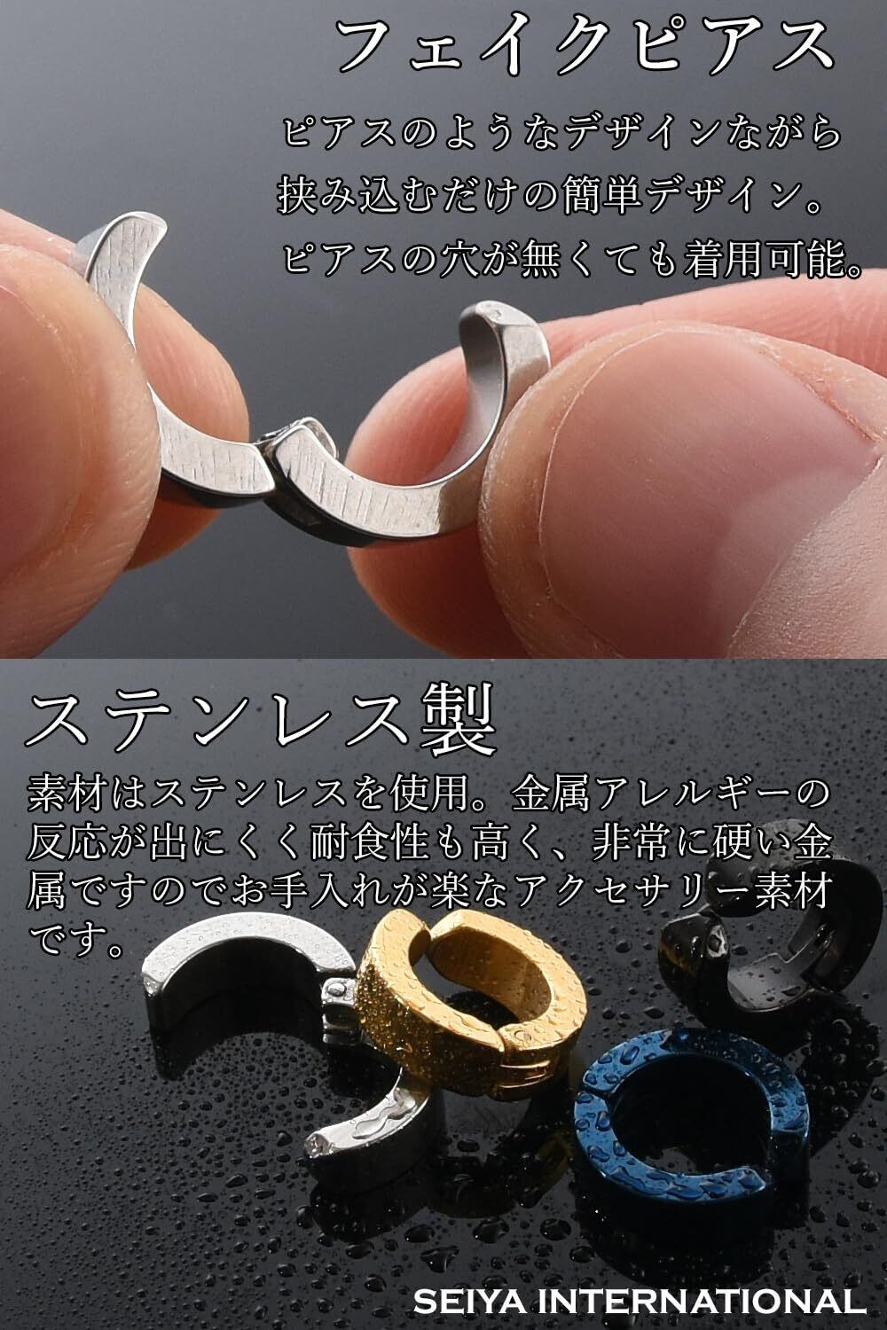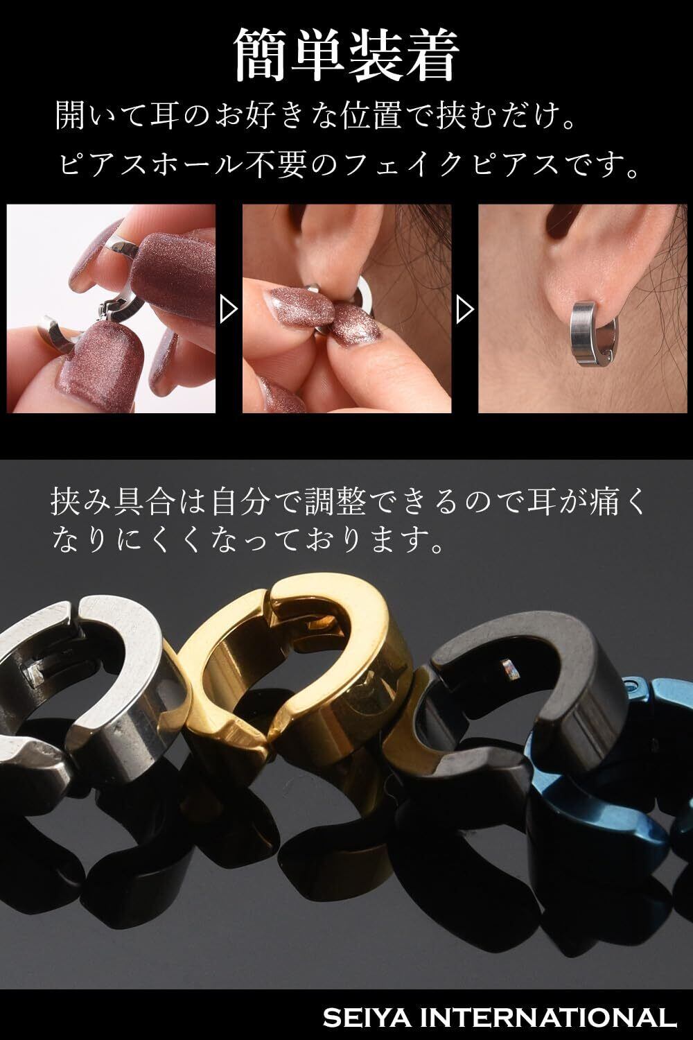 [SEIYA INTERNATIONAL] イヤーカフ メンズ レディース イヤリング フェイクピアス ノンホールピアス フープイヤリング