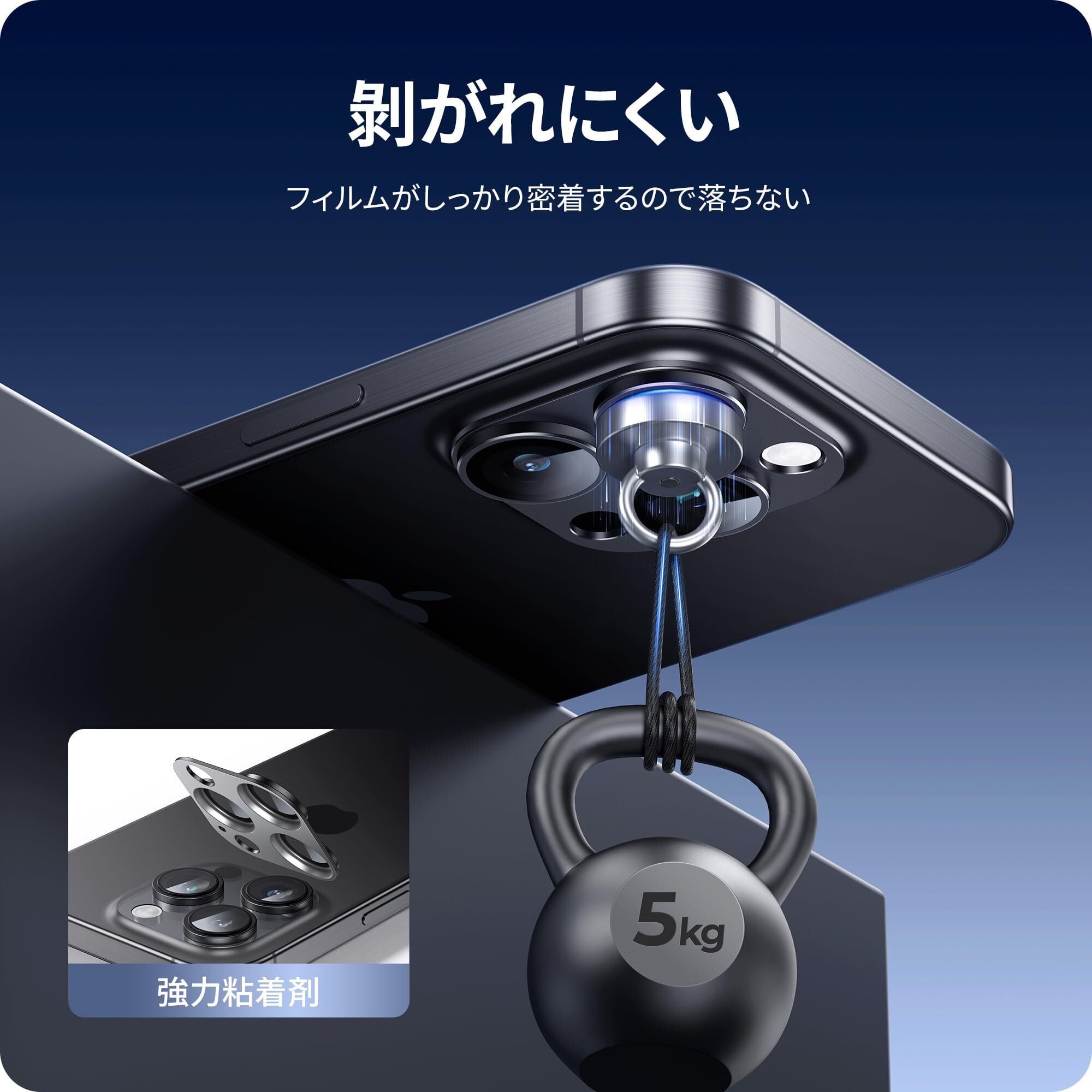 「貼り付け簡単・撥水撥油・指紋防止」粘着力の強い3Mテープを採用しており、アイホン16プロ/16プロマックスレンズに合わせてはめこむように置くだけで、気泡も浮きもなくきれいに貼り付けることができます。初めての方でも簡単に綺麗に貼り付け可能です。カメラ保護フィルムには高耐久撥油コーティングが施されているので、汚れや油分をはじき、指紋がつきにくく、付着した汚れなどは簡単に拭き取れます。
