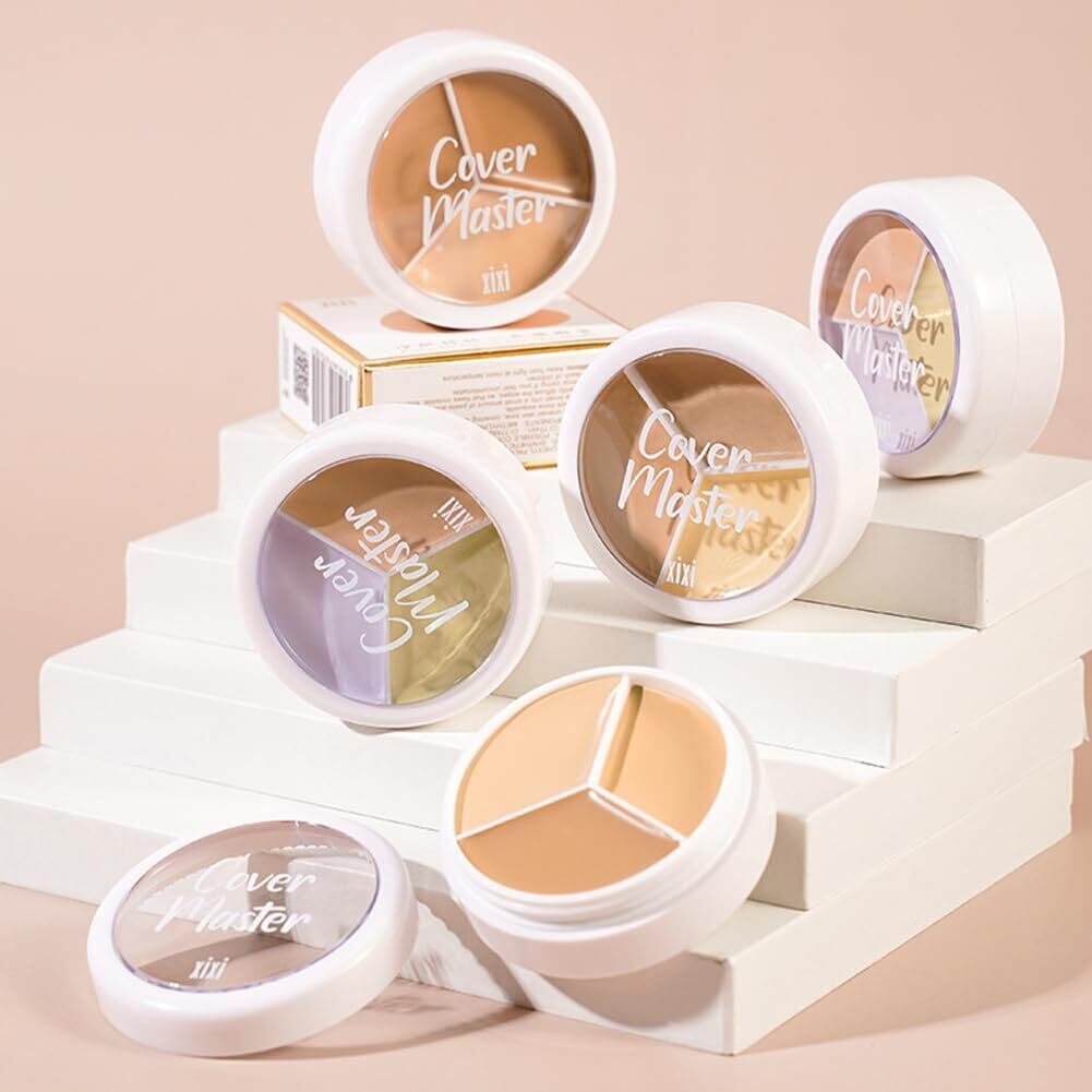 シミ、クマ、ニキビ跡をカバーする3色コンシーラーパレット