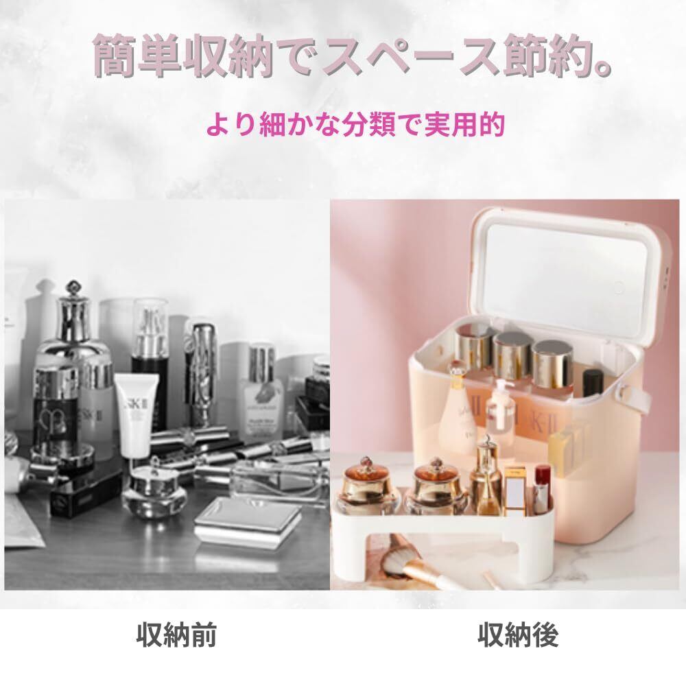 ORIJIRI メイクボックス 鏡付き コスメボックス 大容量 持ち運び 化粧品収納 プロ仕様 大きめ かわいい (ホワイト)