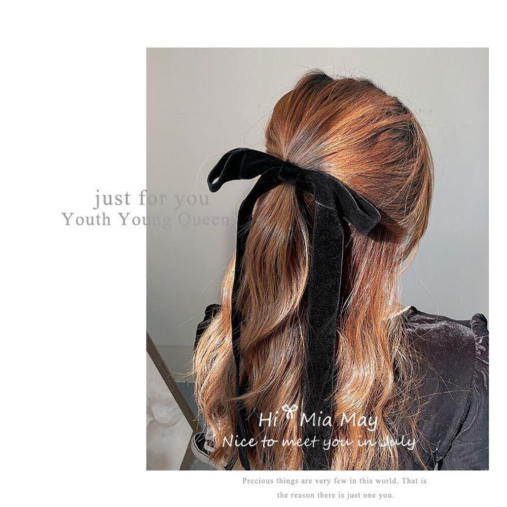 YINKE ベロア リボン ベロアリボン 黒 生地 ヘアアクセサリ 髪飾り おしゃれ 髪に優しい シンプル 静電気防止 上品 大人可愛い