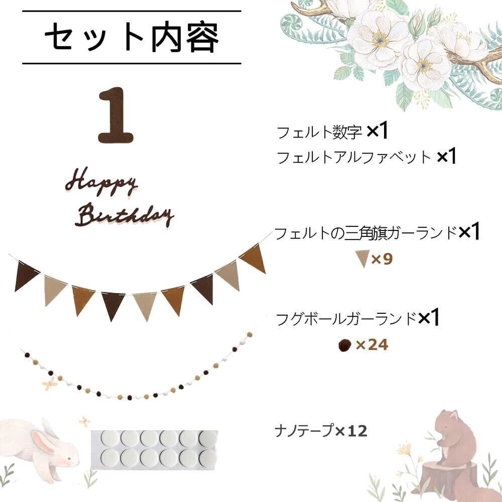 【商品仕様】 happy birthdayフェルト生地バナーx1、160cmフェルト生地フラッグガーランドx1、250cm フグボールガーランドx1、24.5cm1歳の数字x1。(届いた商品は全て関わる材料です。ご自分で少しDIY繋がる必要があります。)